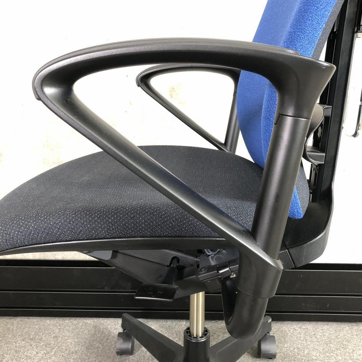 【一人ひとりにマッチする座り心地!姿勢の変化にフレキシブルに対応!】■イトーキ(ITOKI)製 プラオチェア 肘付 ローバック ■サークル肘 ■背面ストロングブルー×座面ブラック オフィスバスターズ 東大阪店【K11】