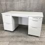 【広々としたワークスペース!W1400の両袖デスク!両サイドにある引き出しで収納力抜群!上長用にもオススメ!】■PLUS(プラス)製 LEEDシリーズ 両袖机 W1400㎜ ■シリンダー錠 ■ホワイト- 在庫数