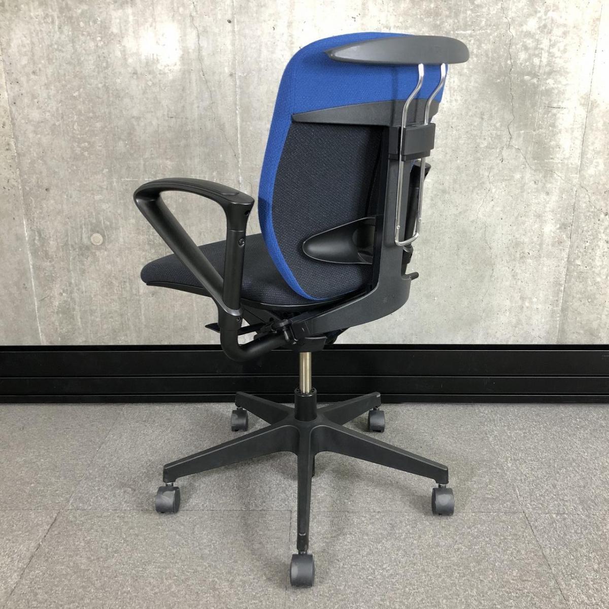 【一人ひとりにマッチする座り心地!ミドルクラスの定番チェア!】■イトーキ(ITOKI)製 プラオ(PRAO)チェア 肘付き ローバック ■固定肘・ランバーサポート付き ■ブルー×ブラックシェル