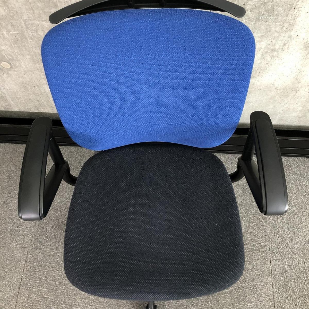 【在庫セール品・7脚限定】【T12】■イトーキ(ITOKI)製 プラオ(PRAO)チェア 肘付ローバック ■ストロングブルー ×ブラックシェル ■サークル肘 ■ランバーサポート付き ■防炎生地【一人ひとりにマッチする座り心地!ミドルクラスの定番チェア!】