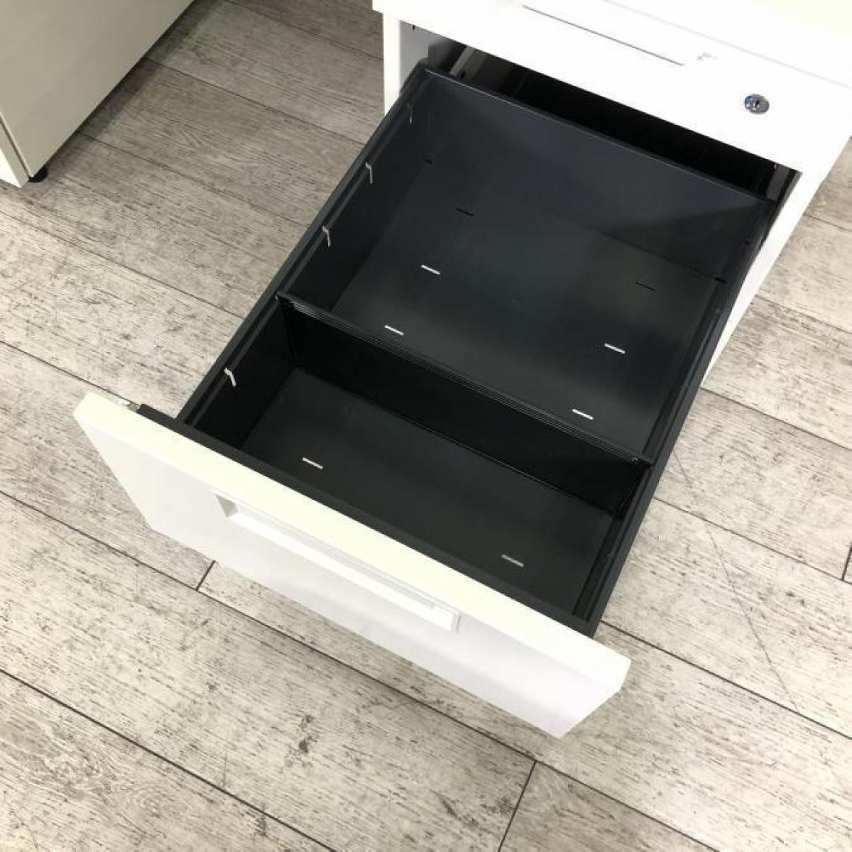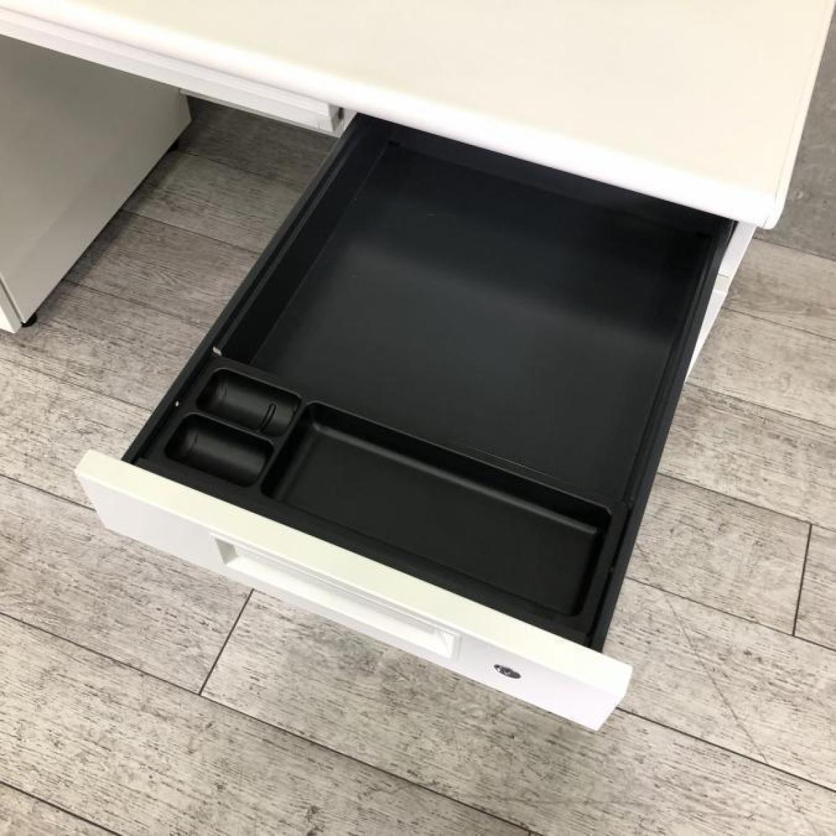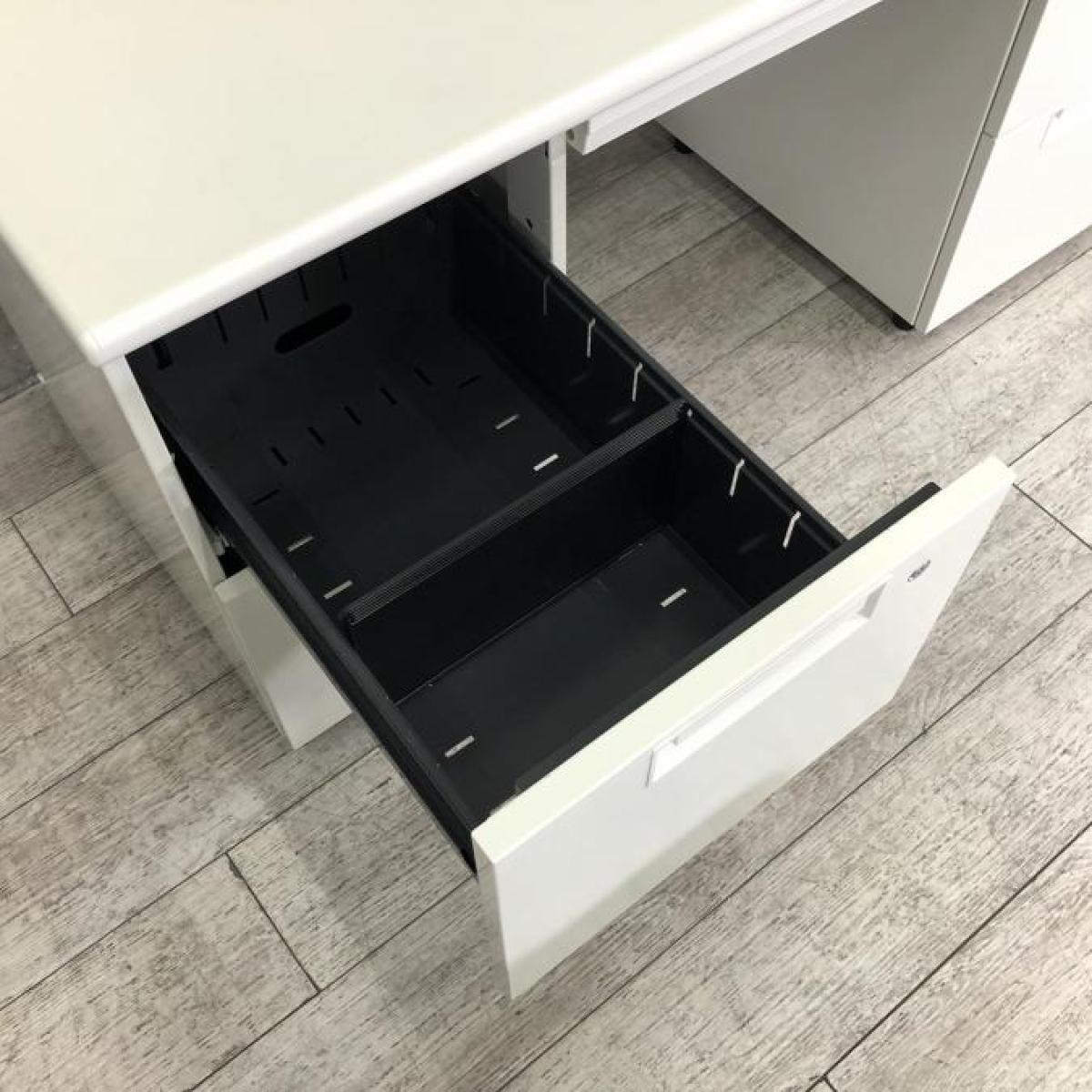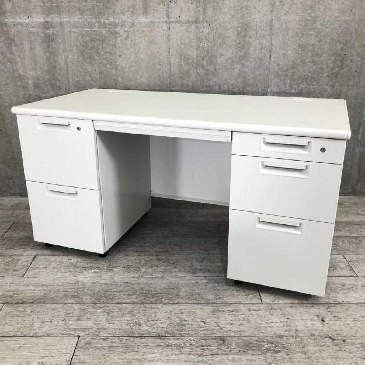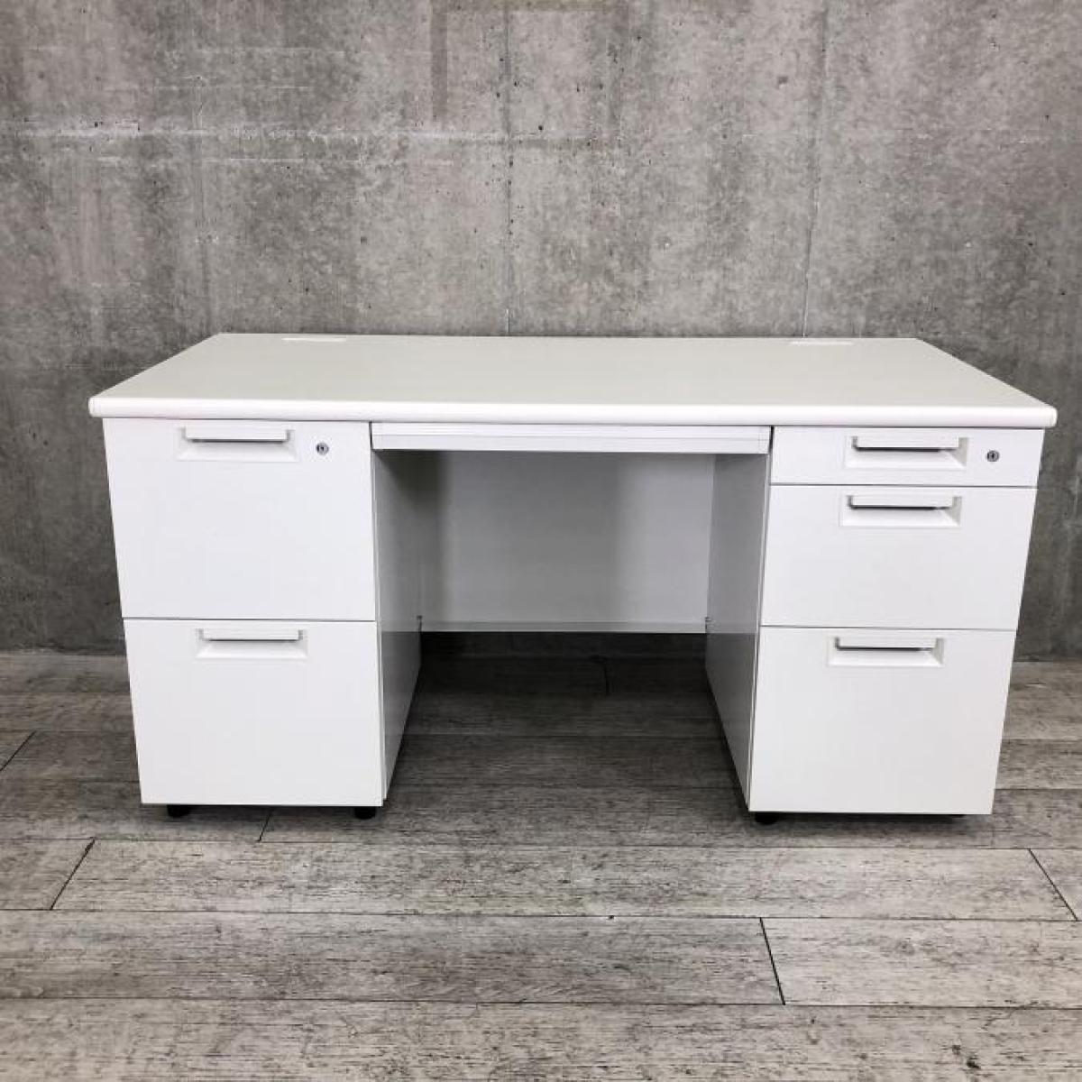 【定価約16万円】【広々としたワークスペース!W1400の両袖デスク!両サイドにある引き出しで収納力抜群!上長用にもオススメ!】■PLUS(プラス)製 LEEDシリーズ 両袖机 W1400㎜ ■シリンダー錠 ■ホワイト- 仙台店