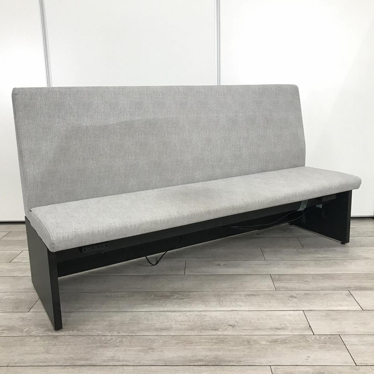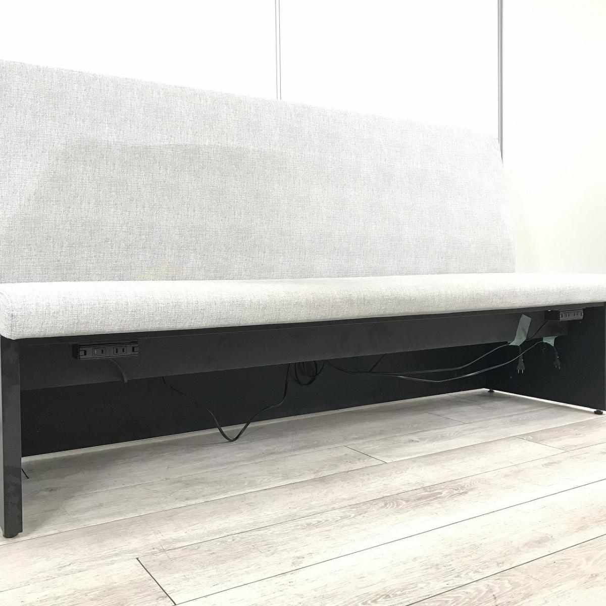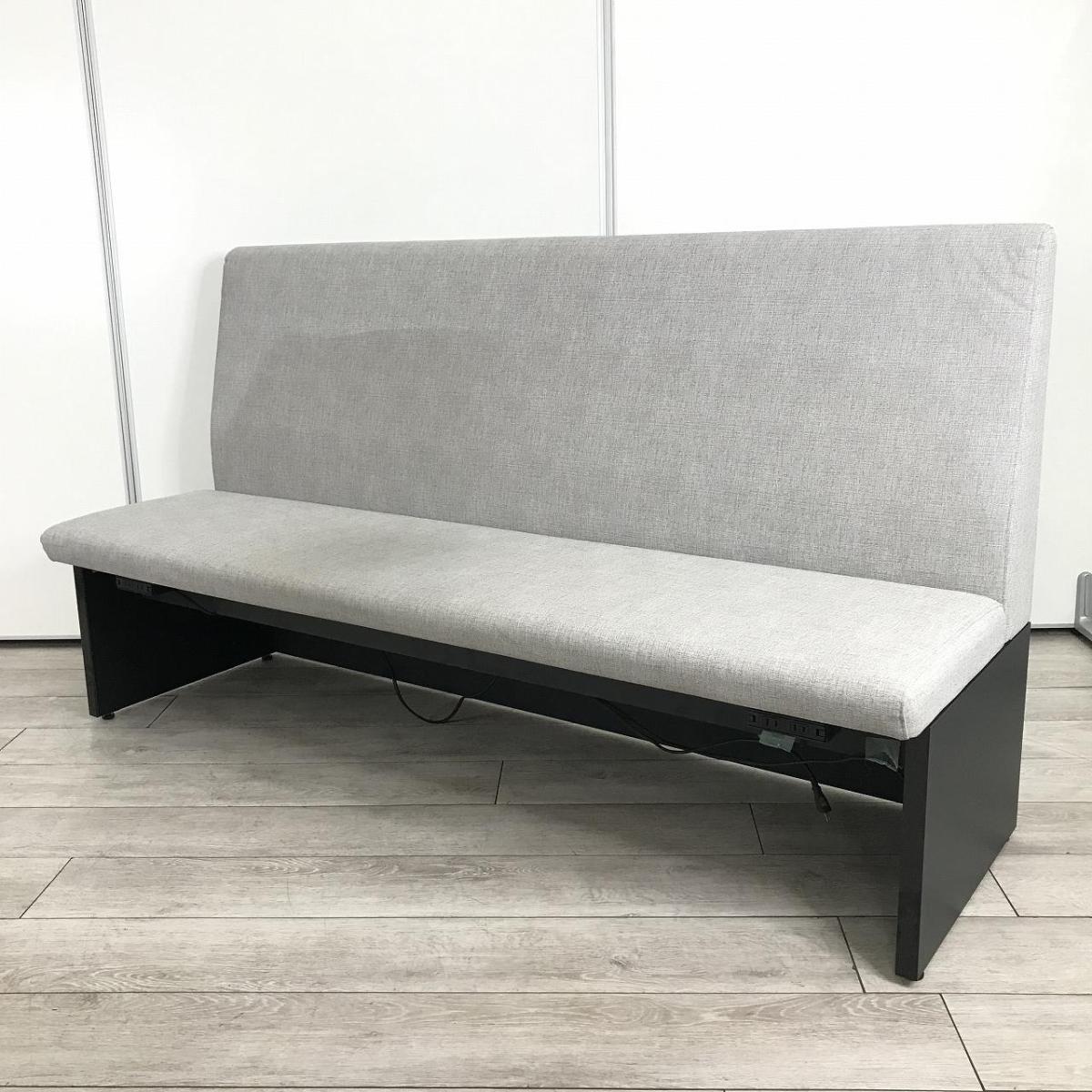 【レイアウト次第でオフィスのあらゆるシーンに対応!ミーティングスペース、休憩スペースなどにオススメ!】■オカムラ(okamura)製 ブレスタ(Bresta) 3人用ソファー ソファベンチ ■コンセントユニット付き ■張地:グレー×脚パネル:ブラック 【ABW商材】【関東倉庫在庫品】【弊社使用欄:A00941861】- 全店共通商品