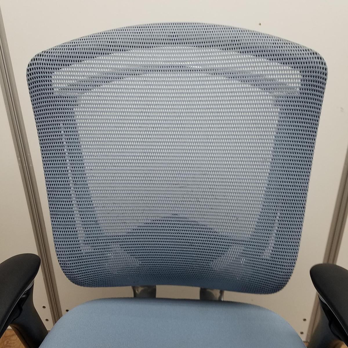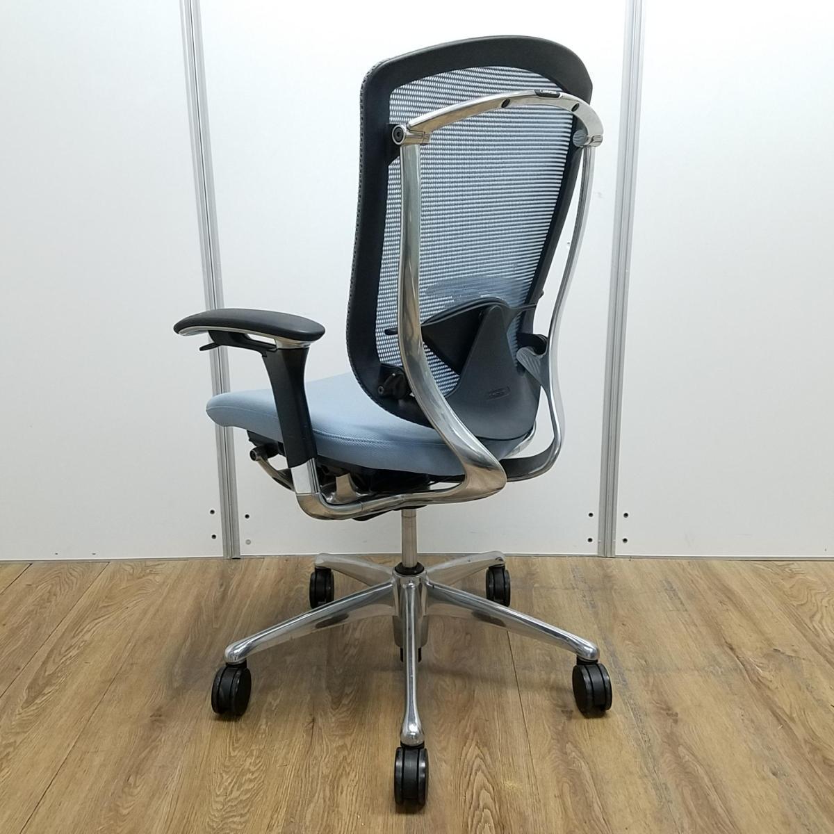 【世界で認められた革新的タスクチェア!人間工学に基づいた快適な座り心地を実現!】■オカムラ製(okamura) コンテッサ (Contessa) ハイバック肘付き ■ライトブルー ■メッシュ ランバーサポート付 ■可動肘【状態良好品!】- つくば店
