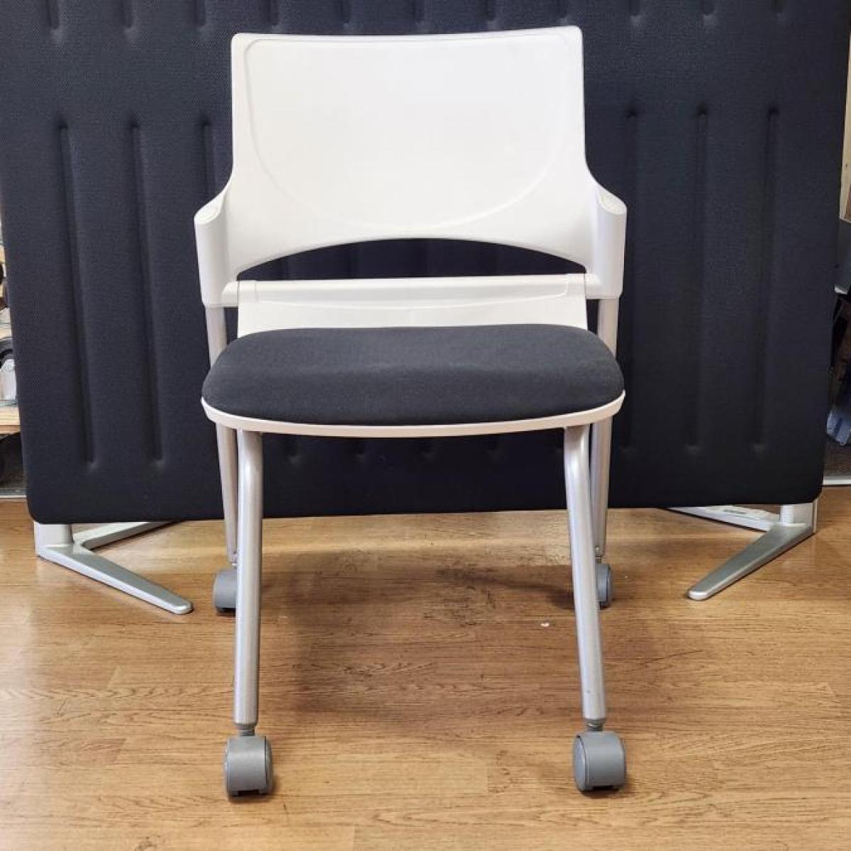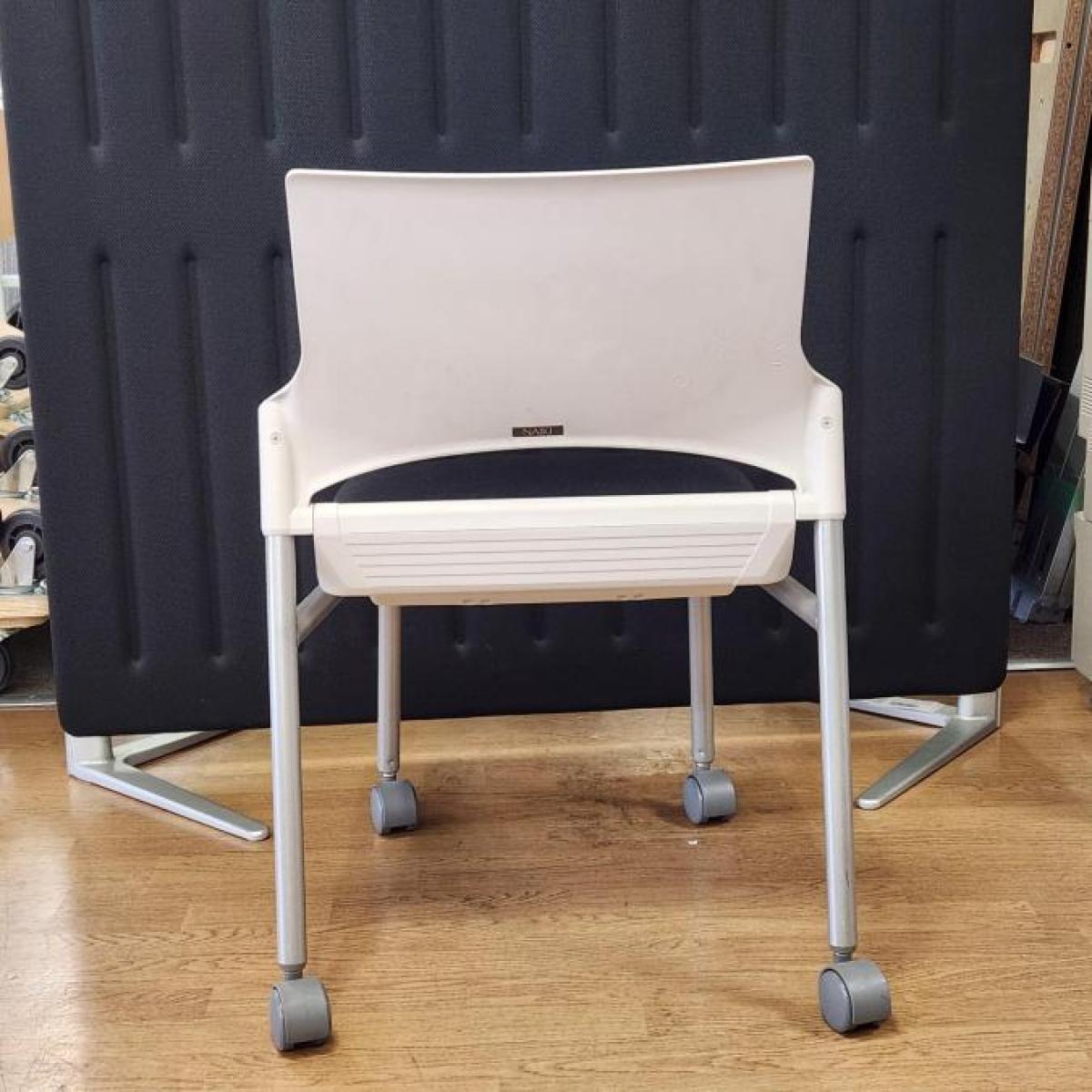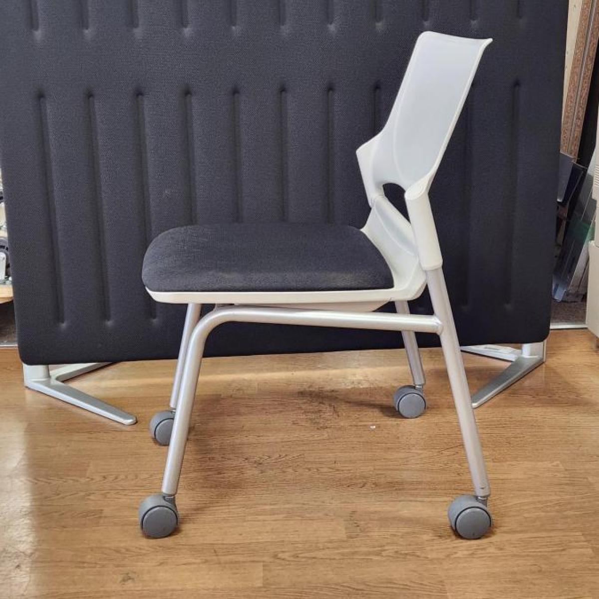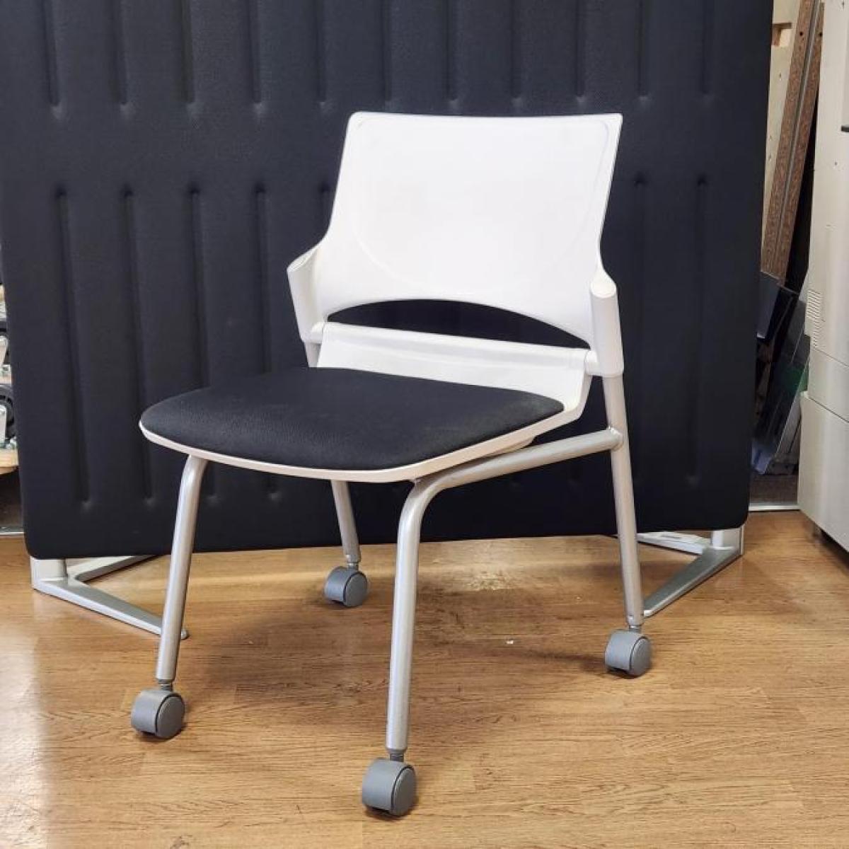 【キャスター付でスイスイ動かせる!】■ナイキ(NAIKI)製 ■肘無しミーテイングチェア ネスティングチェア ■背パッドなし 座面:ブラック ■キャスター付- 岐阜店