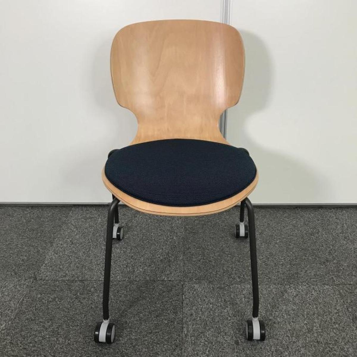 【カフェ調オフィス・リフレッシュスペースにおすすめ!重ねて収納可能!】■ クレス製 (CRES) HABES (ハベス) ACタイプ 肘無スタッキングチェア ■座面ブルー×木製ナチュラルシェル ■キャスター付 ■クッション付- 在庫数