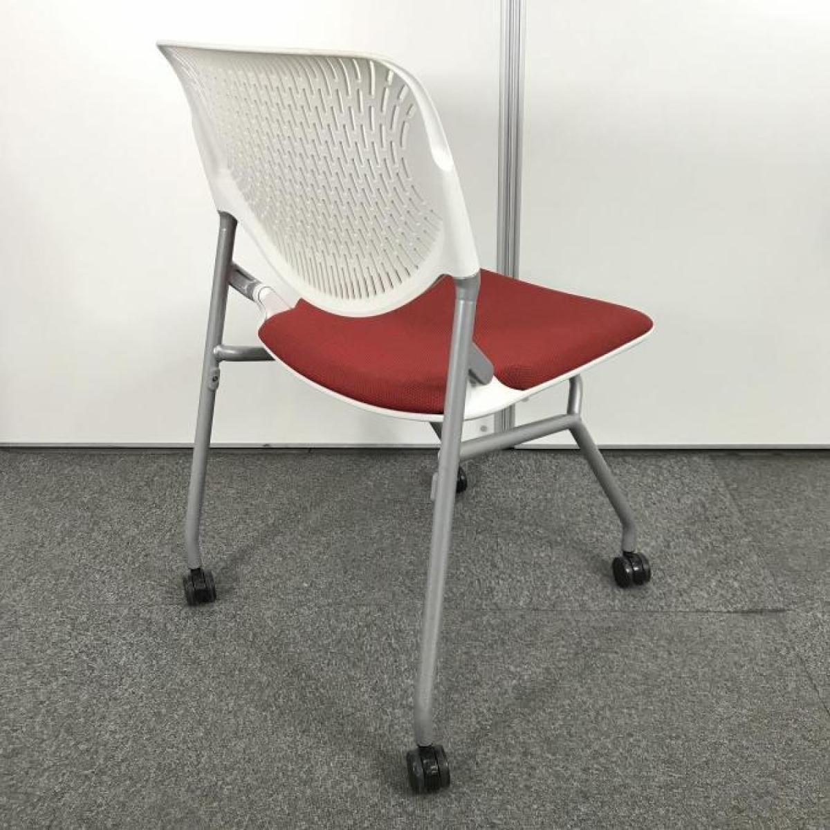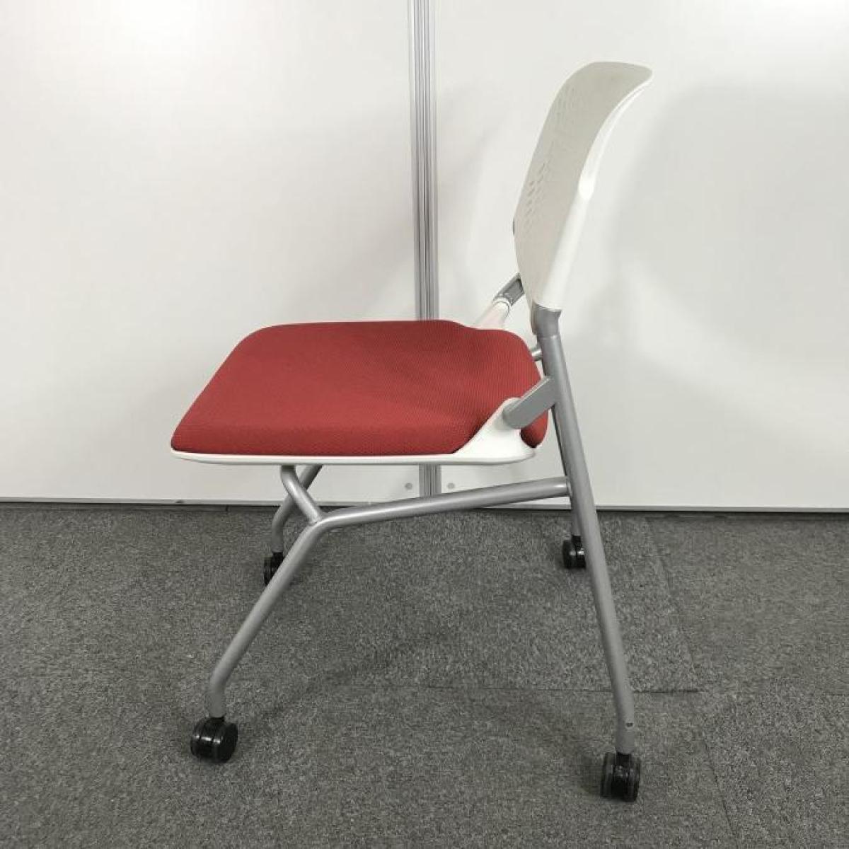 【在庫入替セール品!】【シンプルなデザインで使いやすい!重ねて収納可能なスタッキングチェア!会議室、共有スペースなどに!】/オススメ(おすすめ) /人気商品【弊社使用欄:A00986845】■オカムラ(okamura)製 ルナチェア ネスティングチェア ミーティングチェア 背ヌードメッシュ キャスター付 背面ホワイト×座面レッド- 池袋店