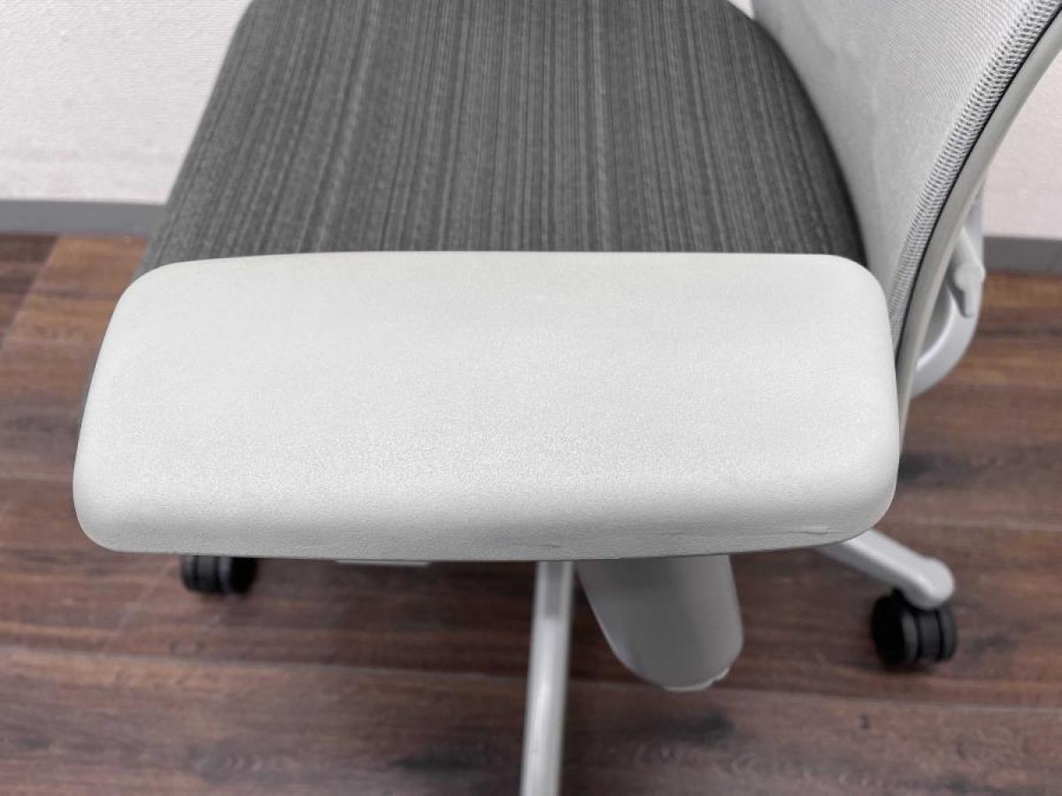 カラーは背面が薄いグレー、座面が濃いグレー、肘掛けは可動式となります。