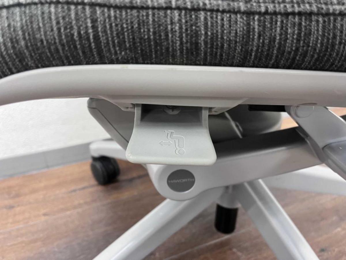 【スタイリッシュなデザインで多彩な機能搭載!腰部を左右非対称に調整できる唯一無二のチェア!】■ヘイワース (HAWORTH) ゾディ (ZODY) チェア ハイバック肘付き ■可動肘/ランバーサポート付 ■背面メッシュ ■グレー- 岐阜店