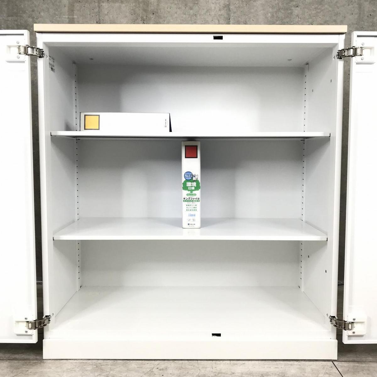 【収納物がひとめで分かる両開き戸タイプ!】■コクヨ(KOKUYO)製 エディア(EDIA) 両開き書庫 ローキャビネット H1000㎜ ■シリンダー錠 ■ホワイト/天板ナチュラル・ベース付【弊社使用欄:A01004845】【ID】サーキュラーバリューCO2削減量の算出について
