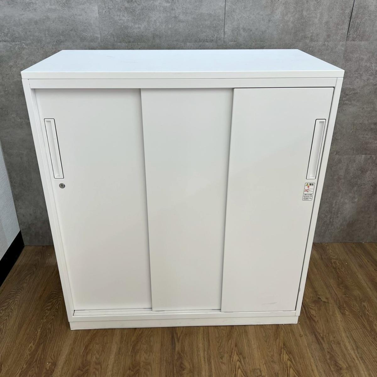 3枚引き戸書庫 コクヨ エディア 鍵付き(シリンダー錠) 天板付き 清潔感のあるホワイトキャビネット 導線を邪魔しないスライド式の扉
