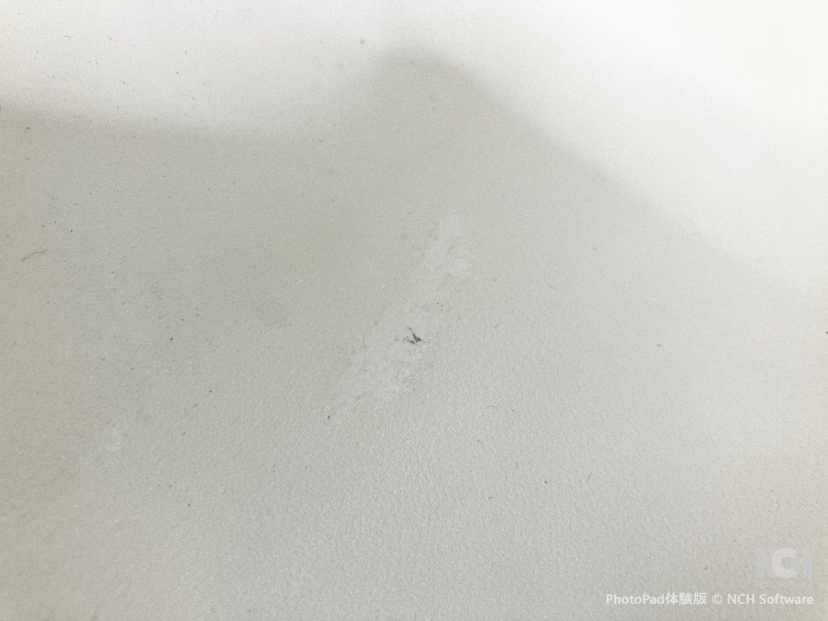 シェル本体の素材(プラスチック)の劣化で、全体的に粉が噴き出ており触るとザラツキがあります。