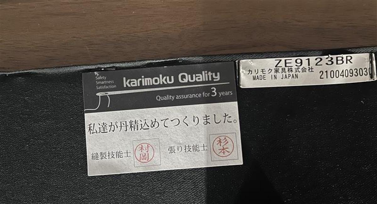 国内大手家具メーカー『カリモク』からビベンテシリーズ ZE91モデル (ZE9123BR) 革張り3人掛けソファです。