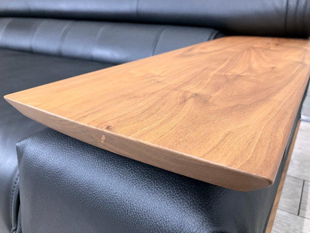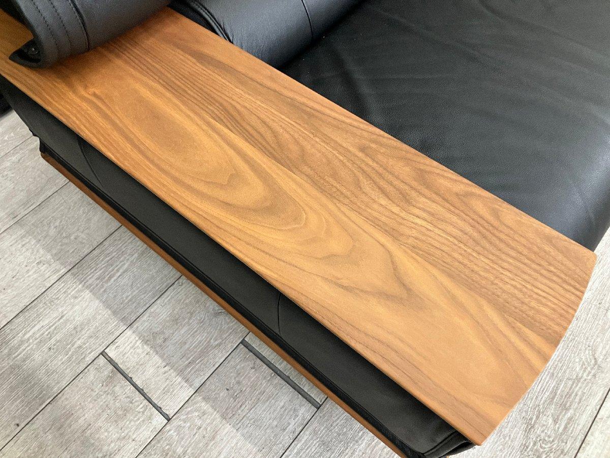木目の美しいウォールナット材のボリュームあるアームが印象的なモダンスタイルのソファ。大判の本革を惜しみなく使用し、風格と高級感が漂う本格的な一品。人体工学に基づき研究が重ねられたカリモクならではのゆったりとした座り心地は家族の集まるリビングに最適です。