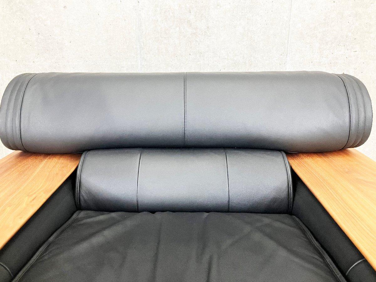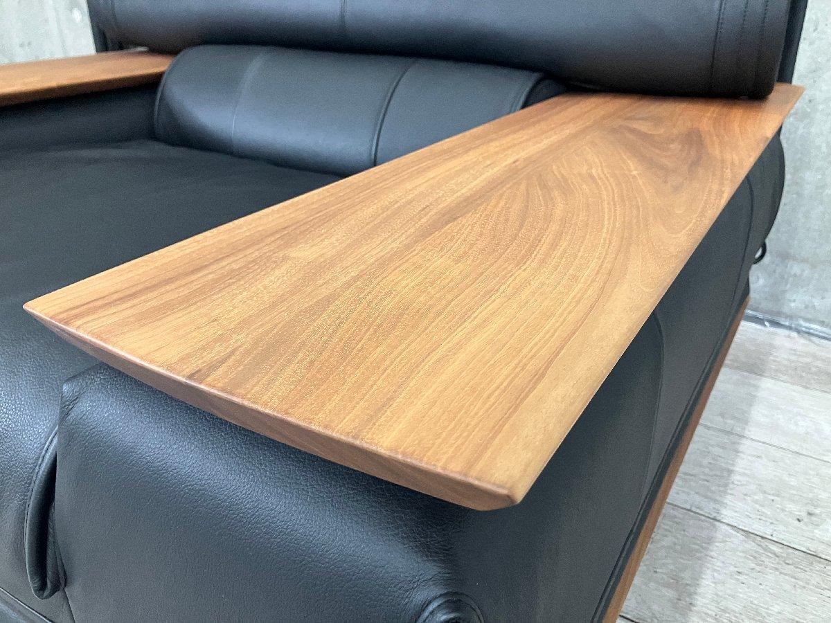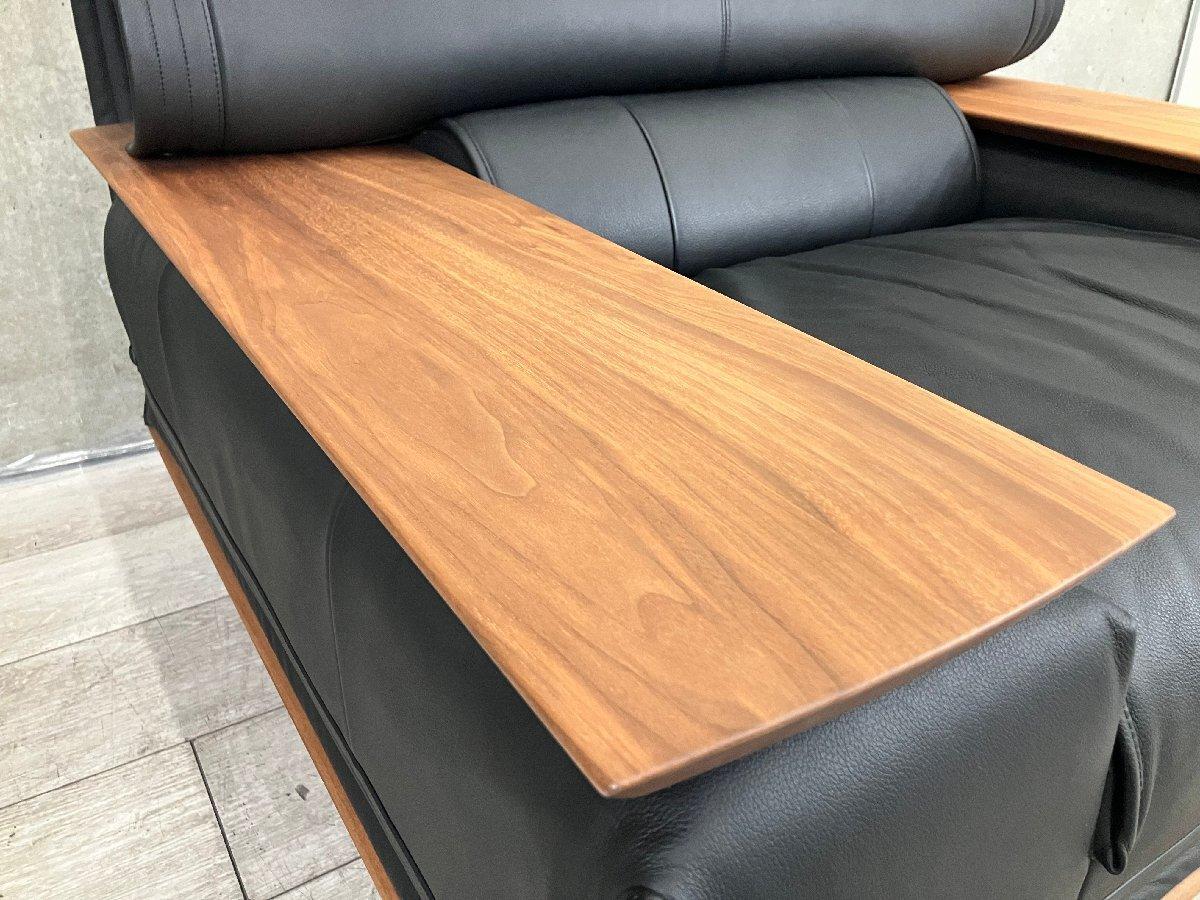 木目の美しいウォールナット材のボリュームあるアームが印象的なモダンスタイルのソファ。大判の本革を惜しみなく使用し、風格と高級感が漂う本格的な一品。人体工学に基づき研究が重ねられたカリモクならではのゆったりとした座り心地は家族の集まるリビングに最適です。