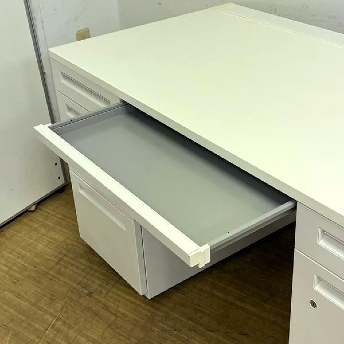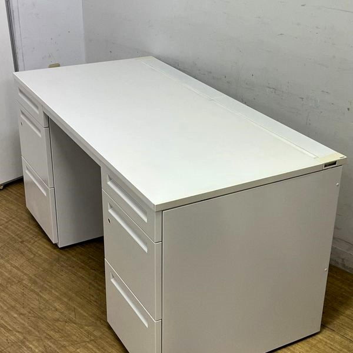国内メーカー製 W1400mm両袖机 本体ホワイト ※高さ700mm