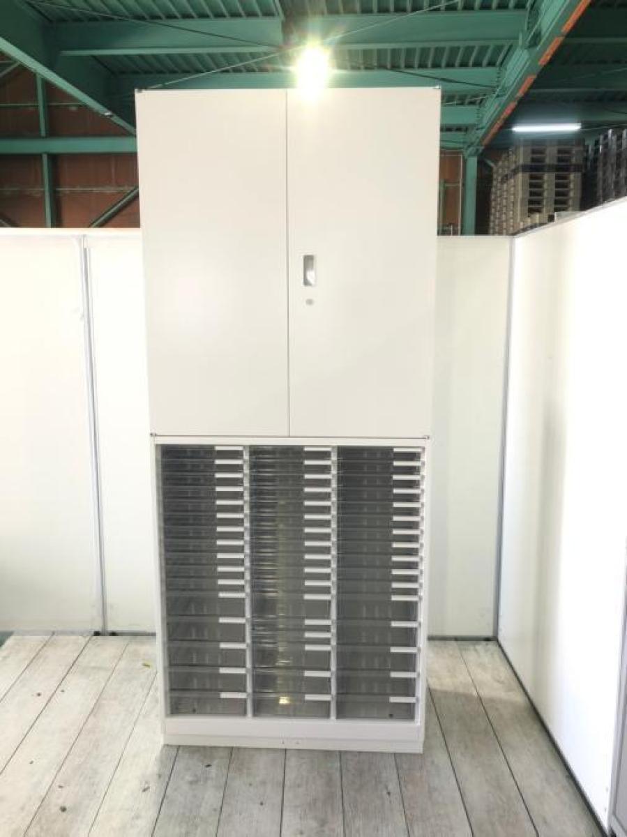 【定価約20万円】【書類の収納、仕分けに便利な下段クリスタルトレイの両開き書庫セット!】在庫がある店舗一覧