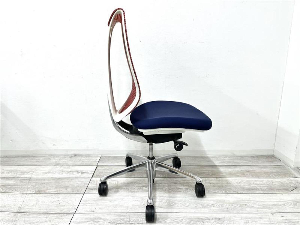 【人間工学から生まれた最先端のワーキングチェア!】■オカムラ サブリナチェア 肘掛け無 背:レッド / 座:ダークブルー ■流れるような美しいフォルム!姿勢に心地よくフィット!【K10】