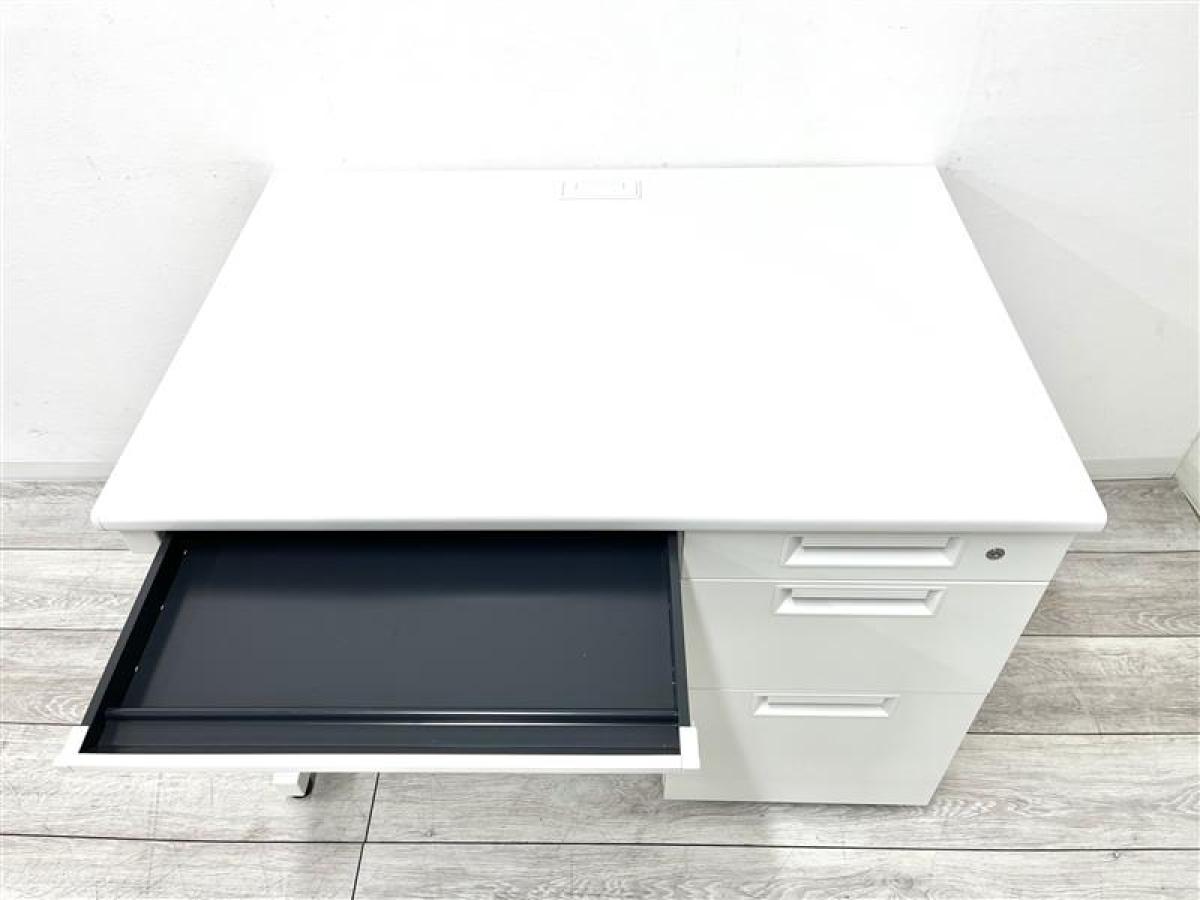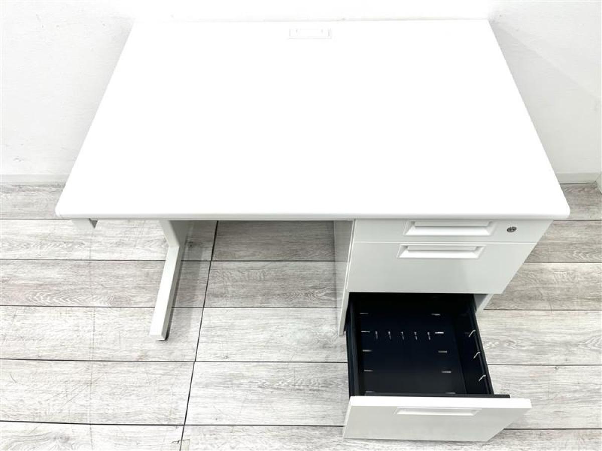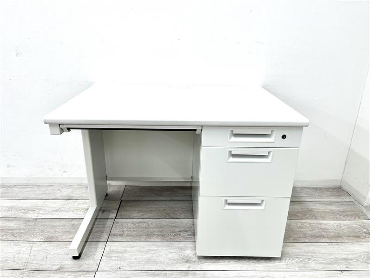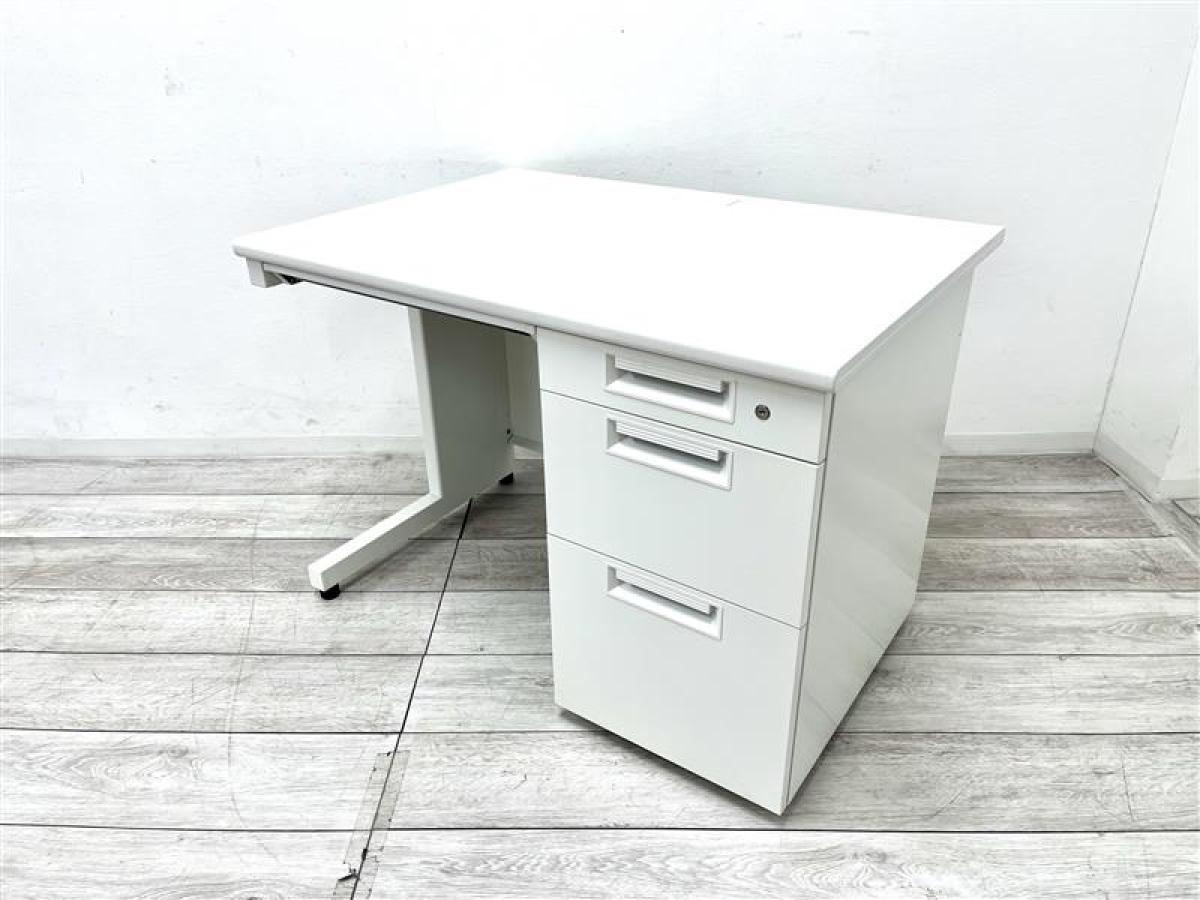 【定価約5万円】【コンパクトな幅1000㎜サイズの片袖机入荷!】■プラス/フラットライン ■ホワイト ■3段引き出し在庫がある店舗一覧