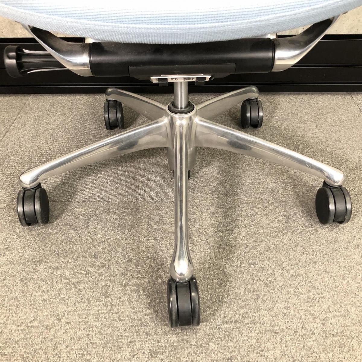 【K9】【商品入替のため、残り7脚限り】【座面に使用感の汚れあり】オカムラ製 コンテッサシリーズ ライトブルー 背面メッシュ ランバーサポート付 可動肘 世界で認められた革新的タスクチェア! 人間工学に基づいた快適な座り心地を実現! 肘付きハイバックチェア!!