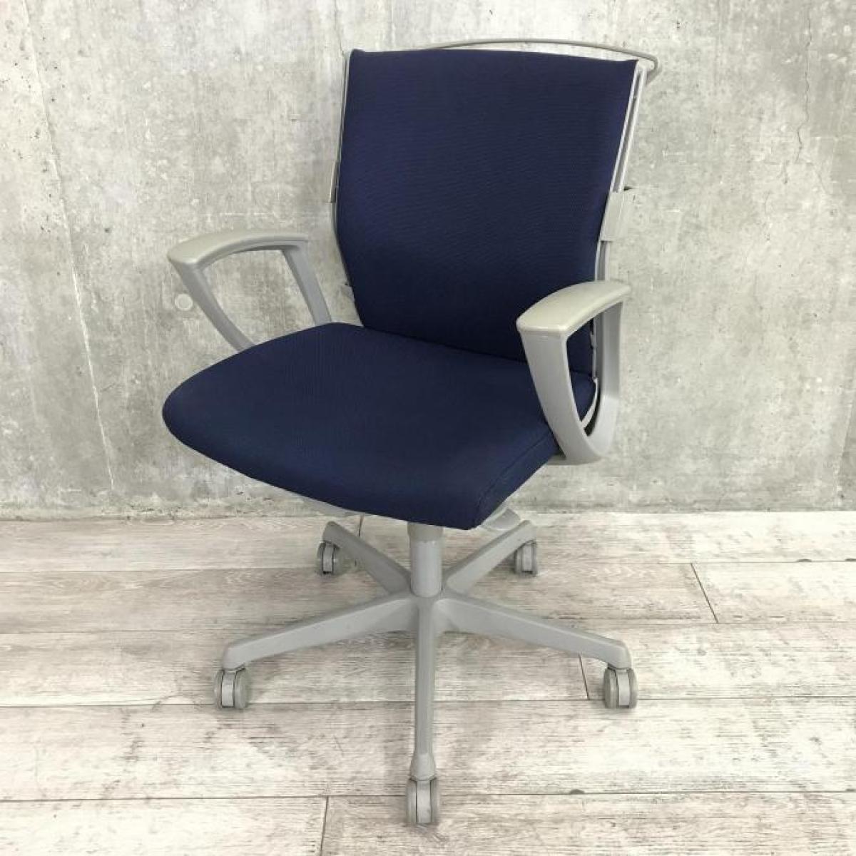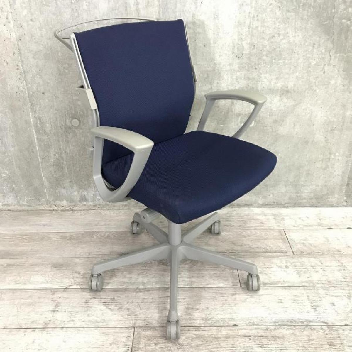 【在庫入替セール品】【長時間のデスクワークもランバーが快適にサポート!オフィスの定番チェア!起業や入替に!】■オカムラ(okamura)製 エスクードチェア(ESCUDO) 肘付き ローバック ■サークル肘 ランバー付 ■ダークブルー×ブラックシェル【弊社使用欄:A01030477 K】