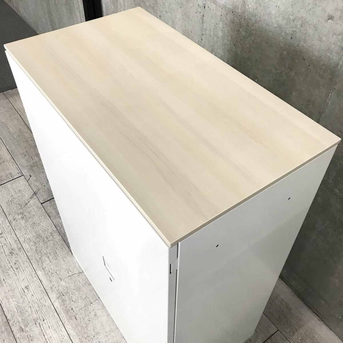 【使いやすさで選ぶならコレ!スリムな幅800㎜で省スペースに設置できます!】■オカムラ(okamura) レクトラインシリーズ 両開き書庫 ローキャビネット W800㎜ ■本体:ホワイト 天板:ナチュラル調 ■天板・ベース付き ■シリンダー錠【AD】サーキュラーバリューCO2削減量の算出について