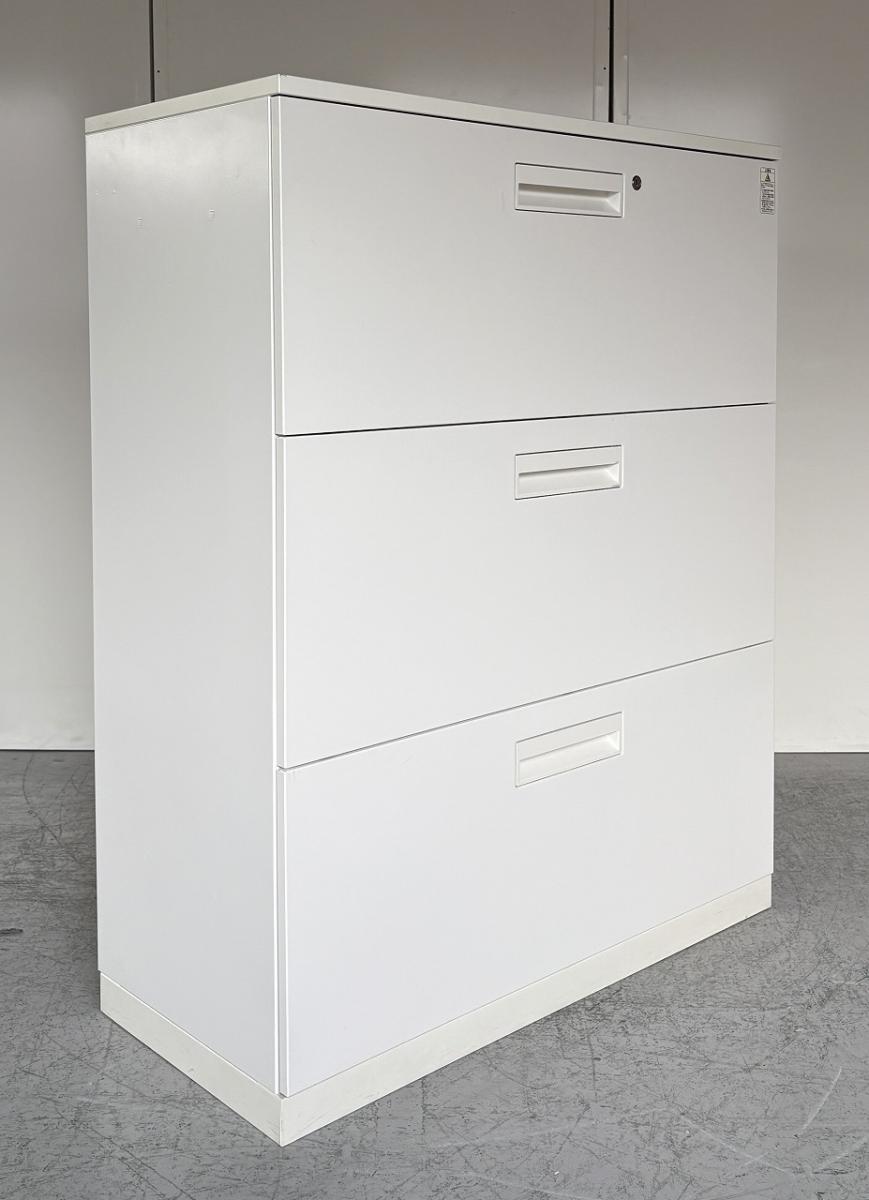 【2020年製】【収納力抜群の3段ラテラル書庫!A4書類が大量に収納可能!】■コクヨ(KOKUYO)製 エディア(EDIA)シリーズ 3段ラテラル ローキャビネット H1130㎜ ■天板・ベース付き ■ホワイト ■シリンダー錠【2511】弊社使用欄【A01044970】