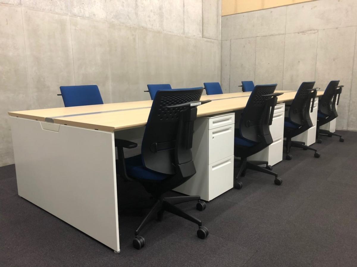 【博】★8名席想定フリーアドレスデスク★ W4800 オカムラ フリーウェイ ナチュラル エンド脚ホワイト 1人当たりW1200 ABW商品 レイアウト変更 入れ替え 買い替え 起業にも 福岡 中古家具 安い 九州最大級