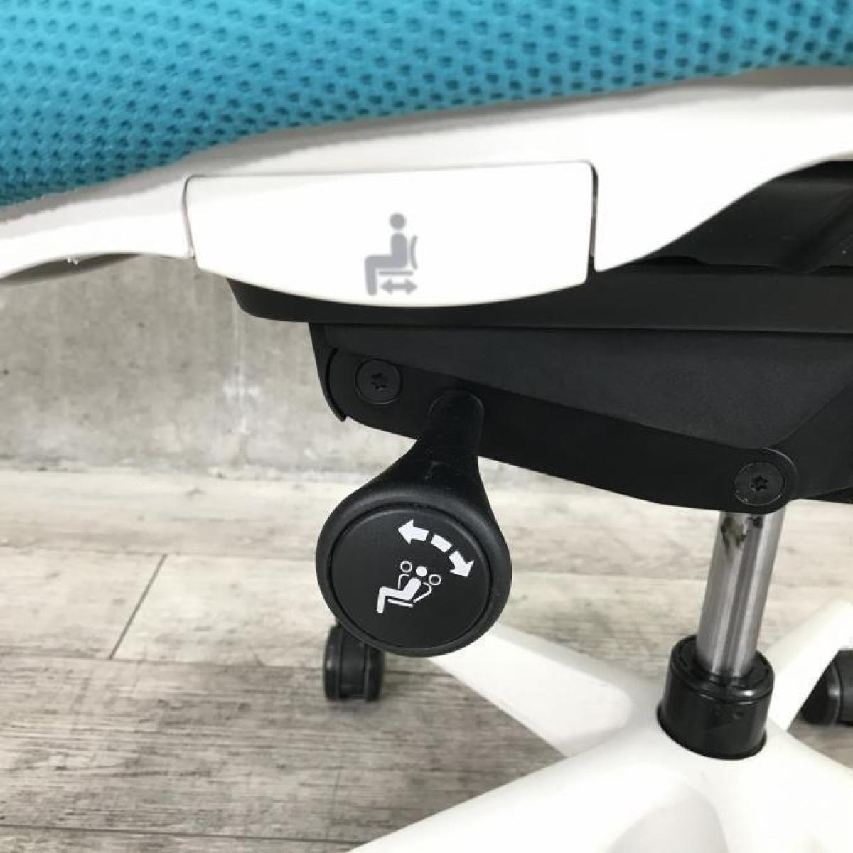 - 座面右下のダイヤル操作で、リクライニングの強弱調整が行えます。これまでのダイヤル式よりも、少ない回転数で、最弱?最強の調整が可能です。