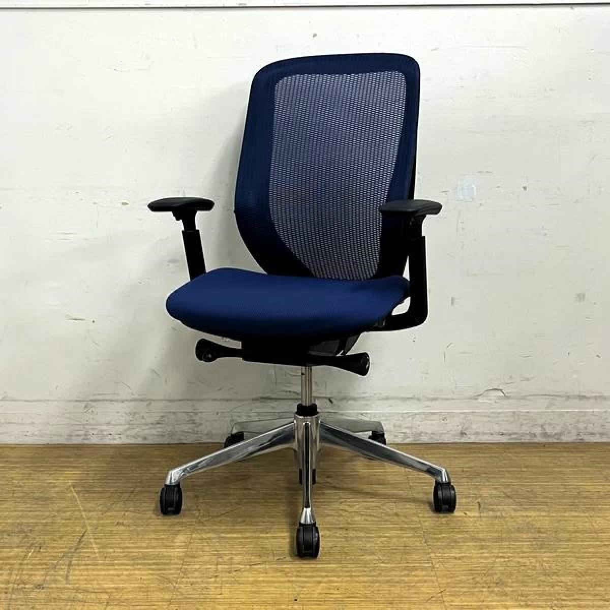 【新品ヘッドレスト交換済み】オカムラ/シルフィー/ブルー/可動肘