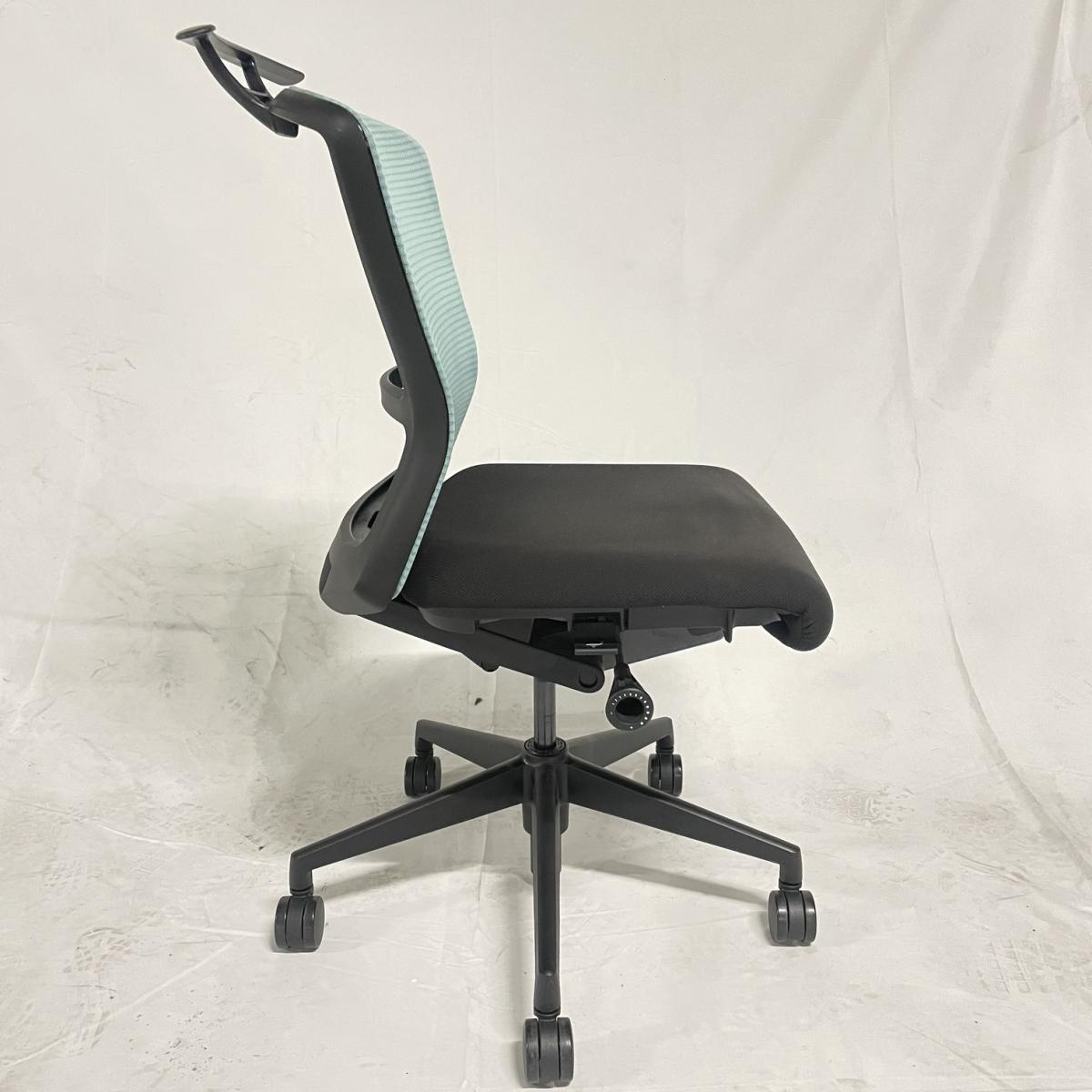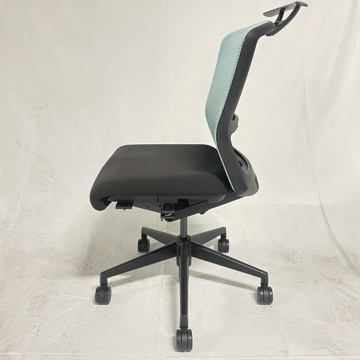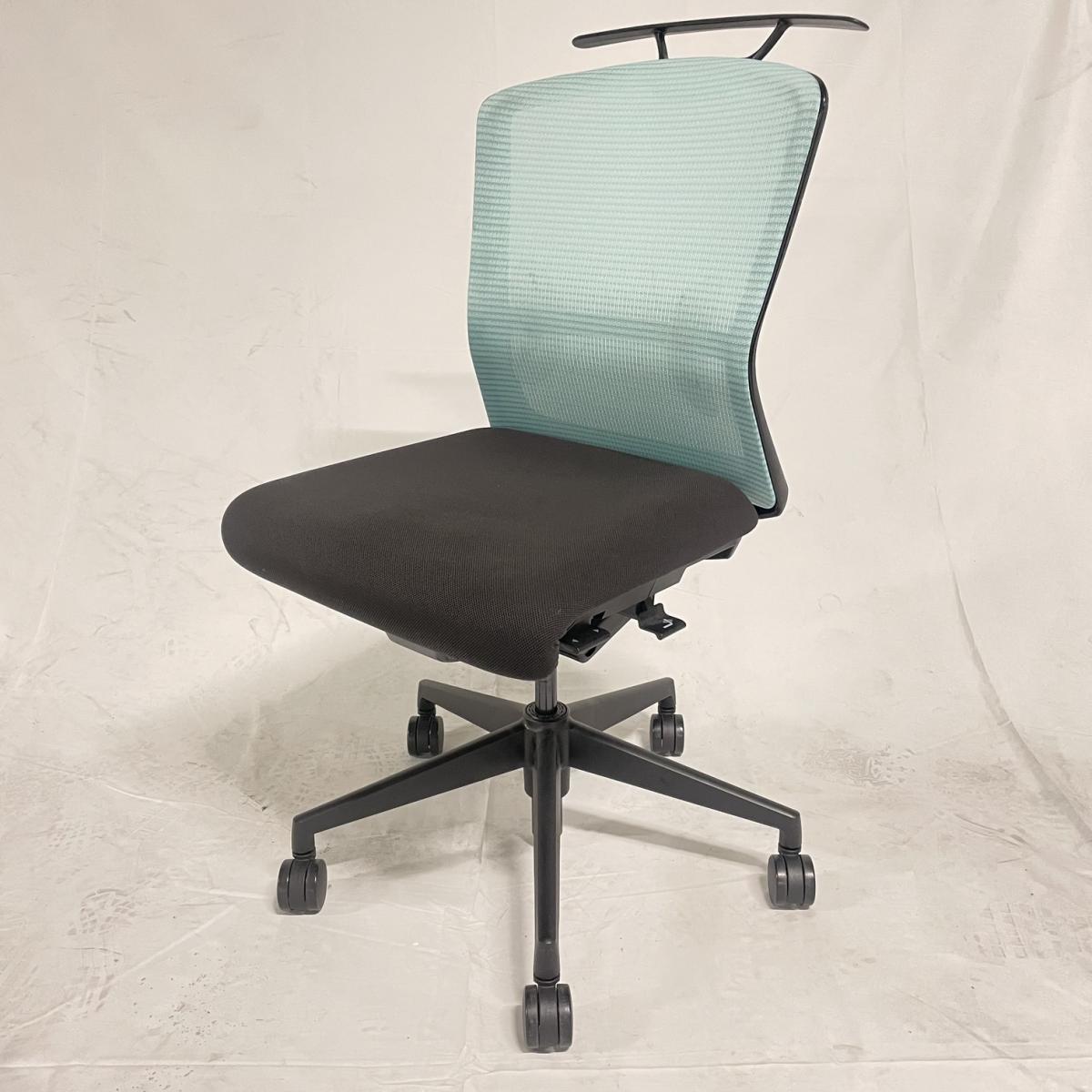 【洗練されたデザインで大人気!ワンランク上の座り心地!】■ウチダ (UCHIDA)製 エルフィ (ELFIE) 肘無ミドルバック ■背面メッシュ ■アクアブルー×ブラックフレーム ■ハンガー付