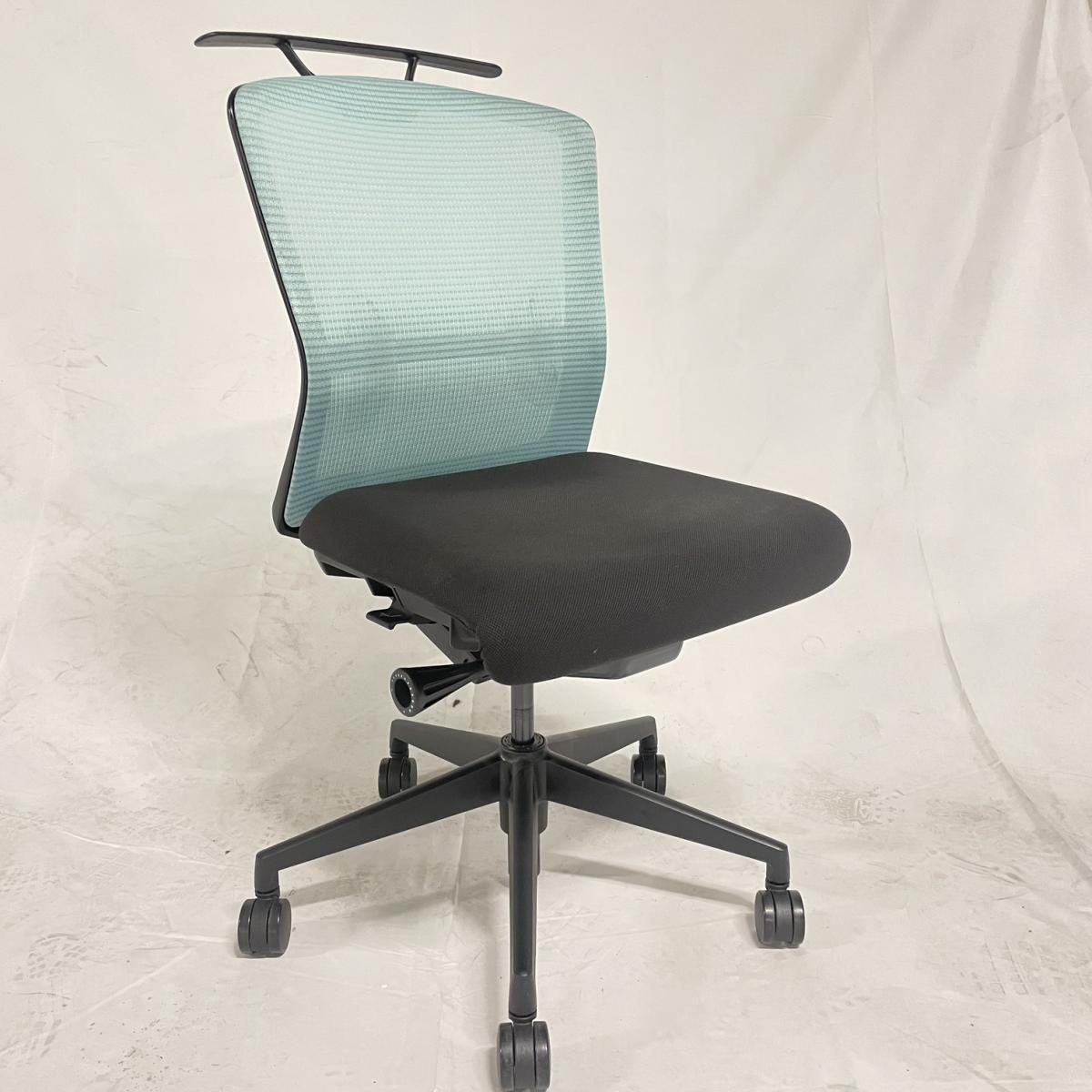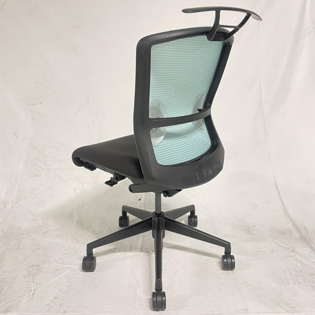 【洗練されたデザインで大人気!ワンランク上の座り心地!】■ウチダ (UCHIDA)製 エルフィ (ELFIE) 肘無ミドルバック ■背面メッシュ ■アクアブルー×ブラックフレーム ■ハンガー付