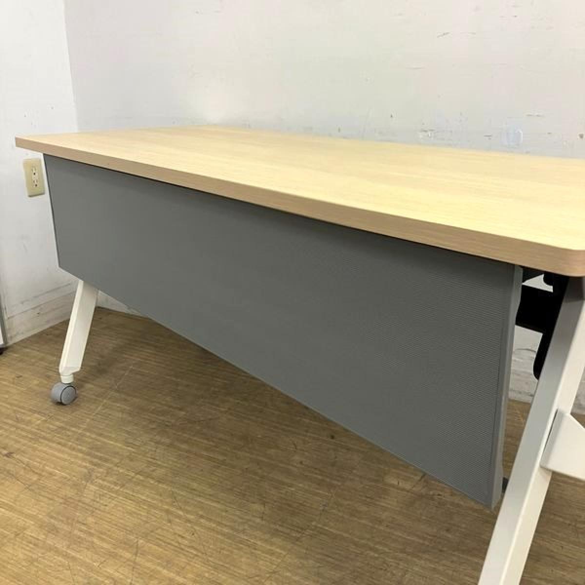 【W1500の折り畳みテーブルが入荷!】◆オカムラ/フラプター ナチュラル 木目 サイドスタックテーブル 収納 中古 博多 天神 九州最大級 オフィスバスターズ
