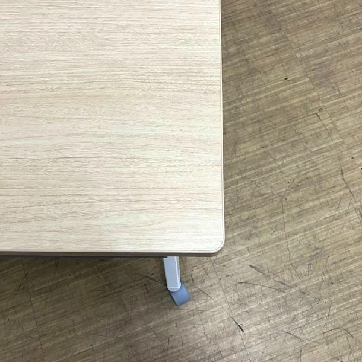 【天板跳ね上げ式でコンパクトに!キャスター付きで移動も楽々!】■オカムラ(okamura)製 フラプター(FLAPTOR)シリーズ サイドスタックテーブル 木目ナチュラル 幕板付き 《オフィスバスターズ福岡博多店は、福岡を拠点として、日本全国へ中古オフィス用品・オフィス家具を提供しております》