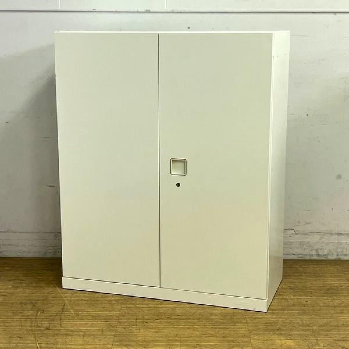 定番サイズ オカムラ/レクトラインシリーズ カラー:ネオホワイト 両開き書庫 鍵付き シリンダー錠 天板無し