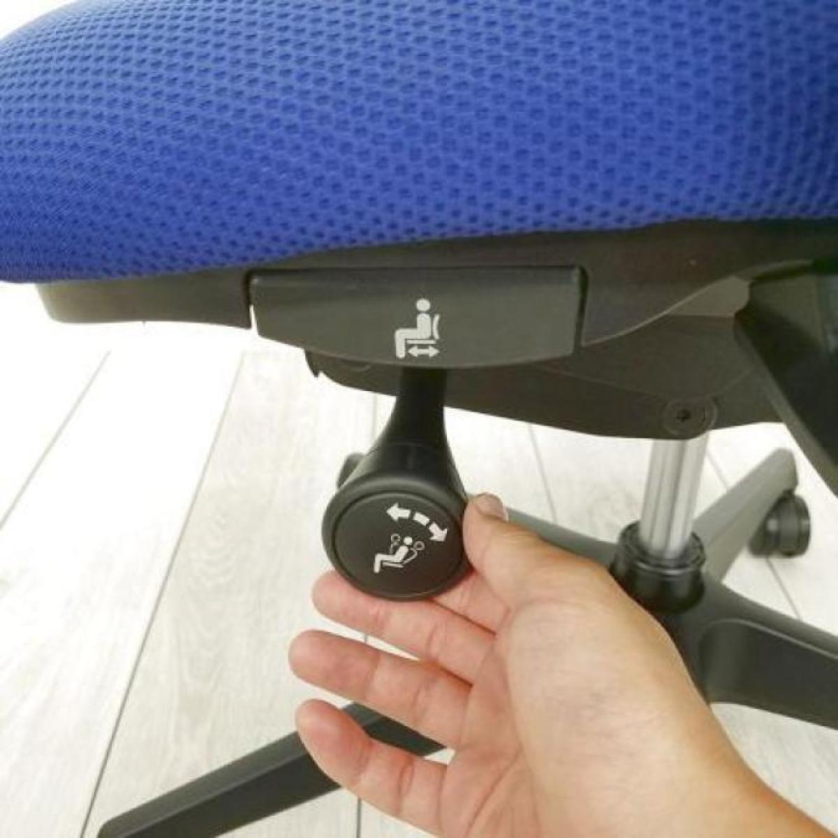 - 座面右下のダイヤル操作で、リクライニングの強弱調整が行えます。これまでのダイヤル式よりも、少ない回転数で、最弱?最強の調整が可能です。