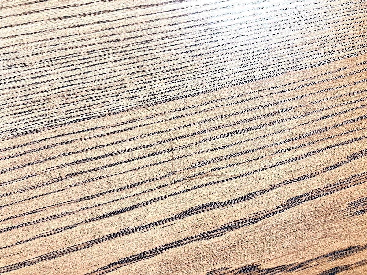 - 目立つ箇所あり傷・凹みが多数、深い傷・凹みが一部ある。(例、天板、幕板、棚板、サイド部分、脚部等にある。)