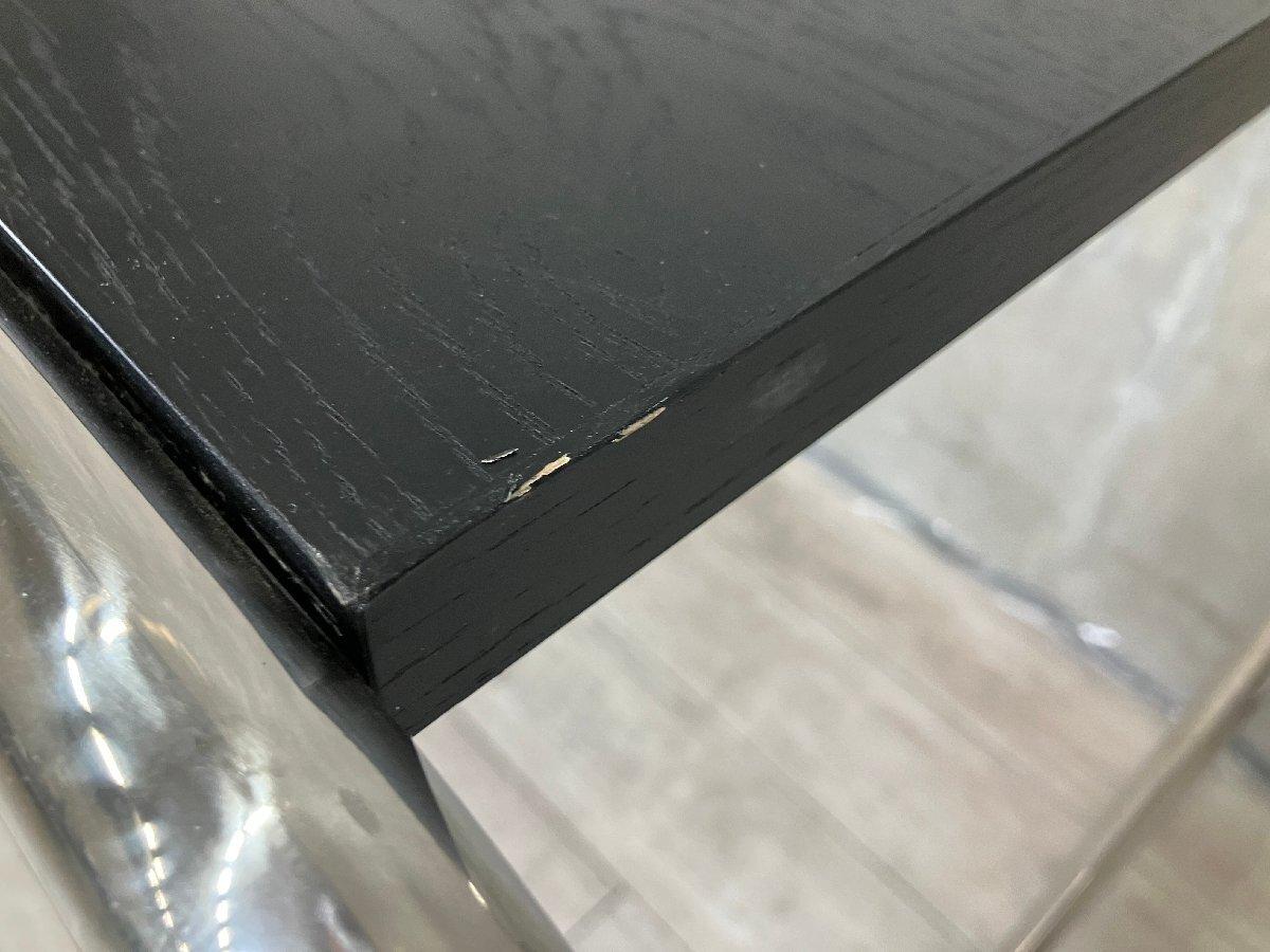 - 目立つ箇所複数あり深い傷・凹みが商品全体にある。(例、天板、幕板、棚板、サイド部分、脚部等にある。)