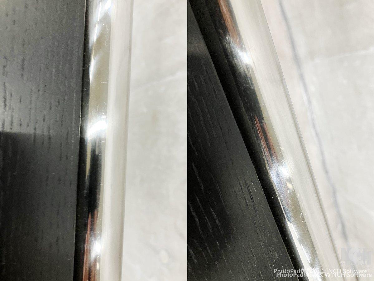 - あり黄ばみ・変色が広い範囲にうっすらある、または濃い黄ばみ・変色が一部ある。(例、天板、幕板、棚板、サイド部分、脚部等にある。)