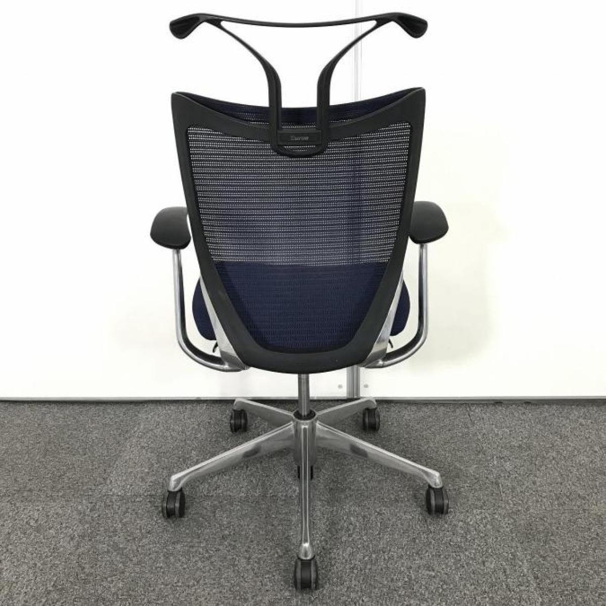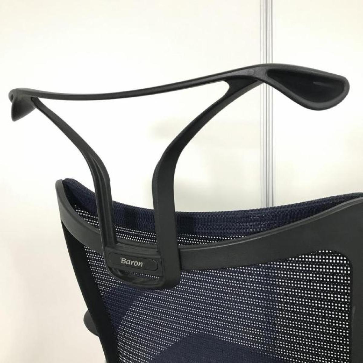 【座面が大人気!国産メッシュチェアの代表格!】■オカムラ(okamura)製 バロン(Baron)チェア ローバック 肘付き ■背面メッシュ ■固定肘 ■色:ダークブルー ■ハンガー付き
