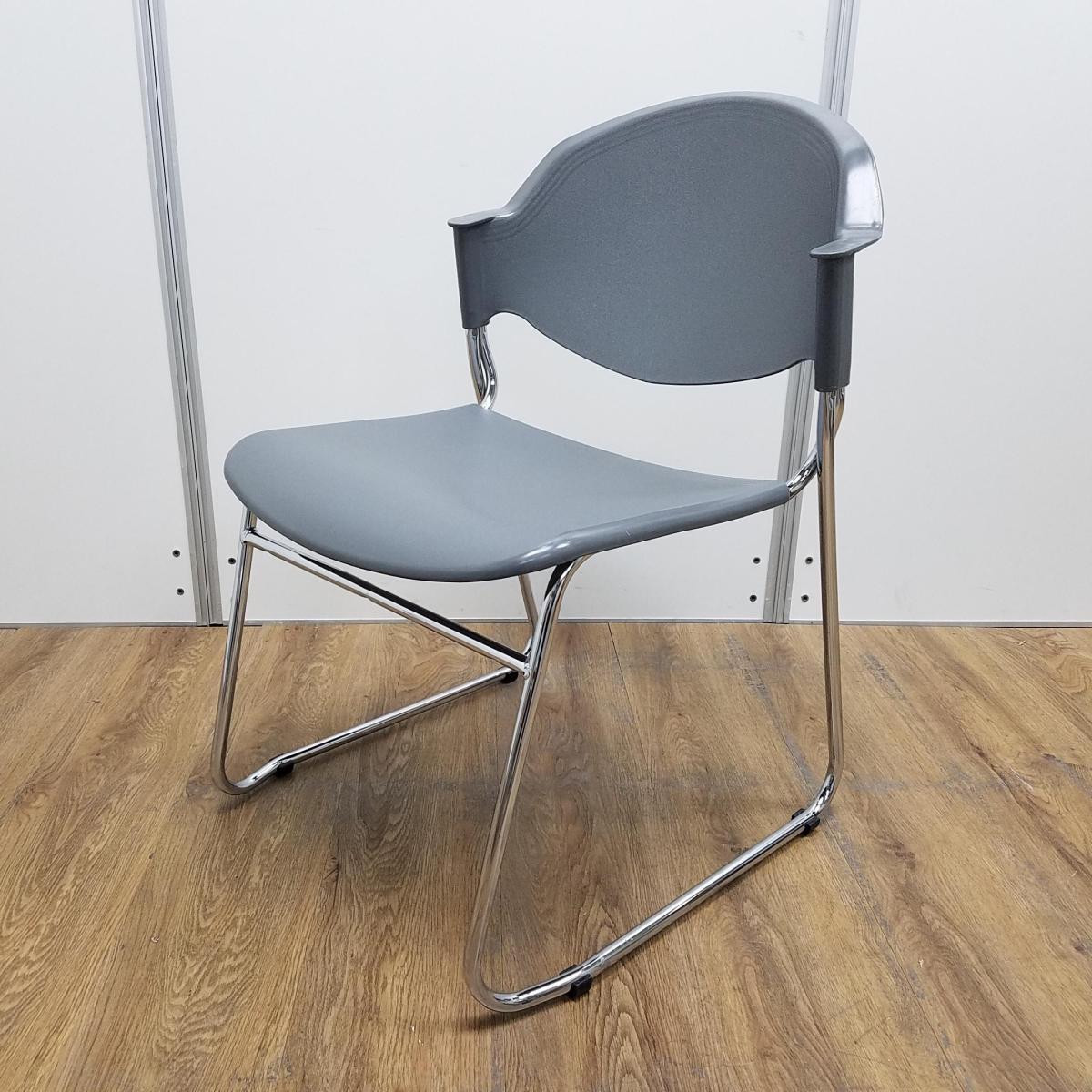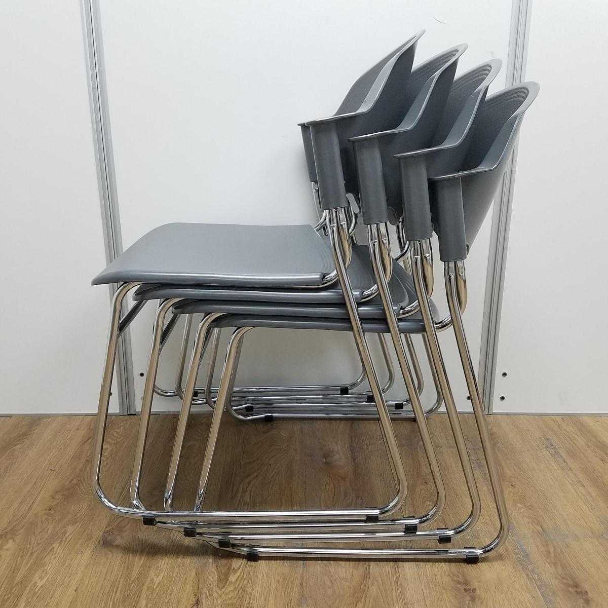 【4脚セット!!】グレー 座面/背面樹脂タイプ 重ねて保管出来てスペースの有効活用に スタッキングチェア!!- 京都東寺店