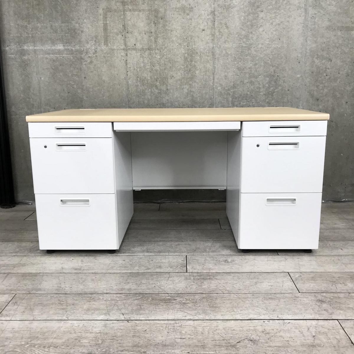 【在庫入替セール品】【管理席・上長席の定番!収納量抜群の両側袖付きデスク!】■コクヨ(KOKUYO) ピクサシリーズ 両袖机 W1400㎜ ■右袖3段 左袖3段 ■天板:ナチュラル/本体:ホワイト ■シリンダー錠【弊社使用欄:A01008403】【ID】- 在庫数