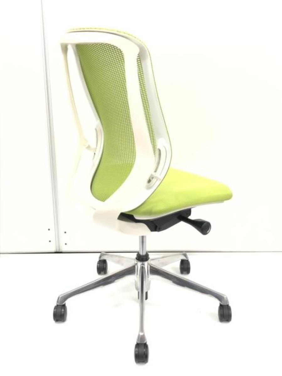 オカムラ製 シルフィ ライムグリーン ブラックフレーム 背面メッシュ ハイバック ハンガー付 樹脂脚 前傾チルト機能付き! オカムラ製品で最も人気を集める高機能メッシュチェア! 肘無しハイバックチェア!!