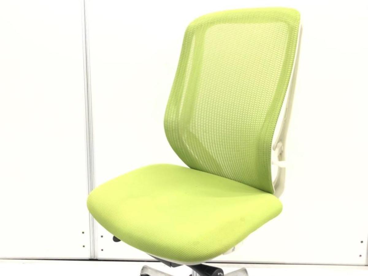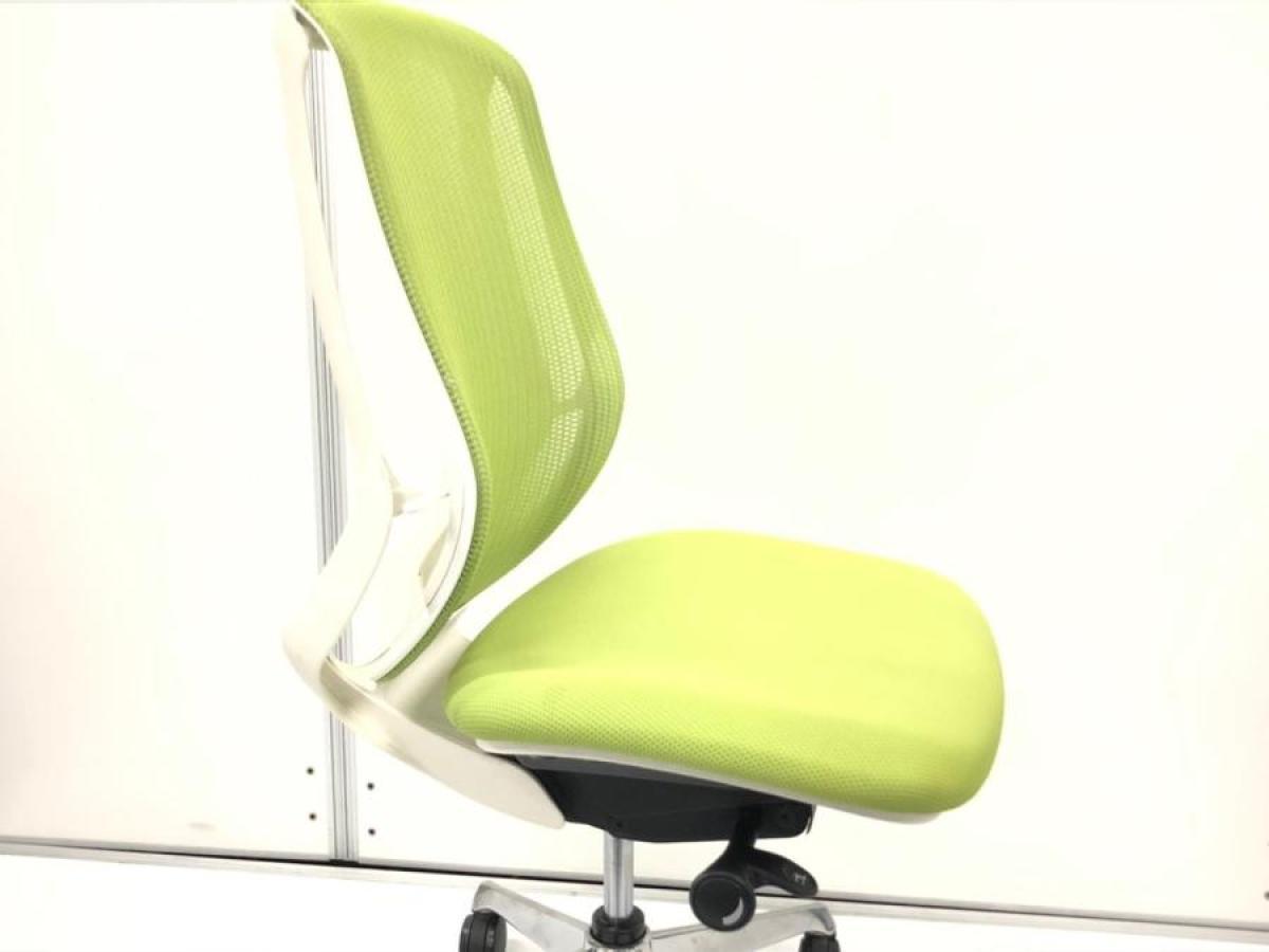オカムラ製 シルフィ ライムグリーン ブラックフレーム 背面メッシュ ハイバック 樹脂脚 前傾チルト機能付き! オカムラ製品で最も人気を集める高機能メッシュチェア! 肘無しハイバックチェア!!