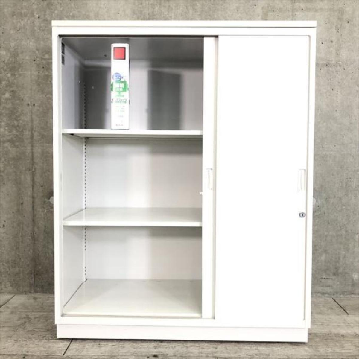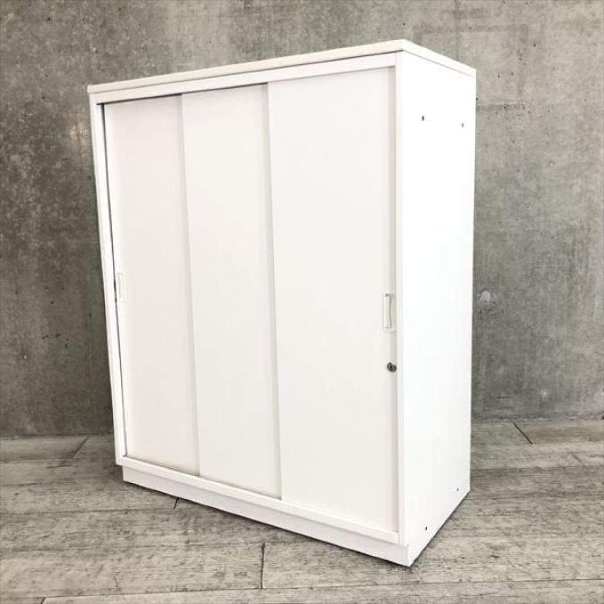 【鍵付き!】■W800スライド引き戸だから開閉スペースに困らない! ■ITOKI(イトーキ)シンラインシリーズ 三枚引戸タイプ ■色:ホワイト【大量入荷!】- 大阪・堺店