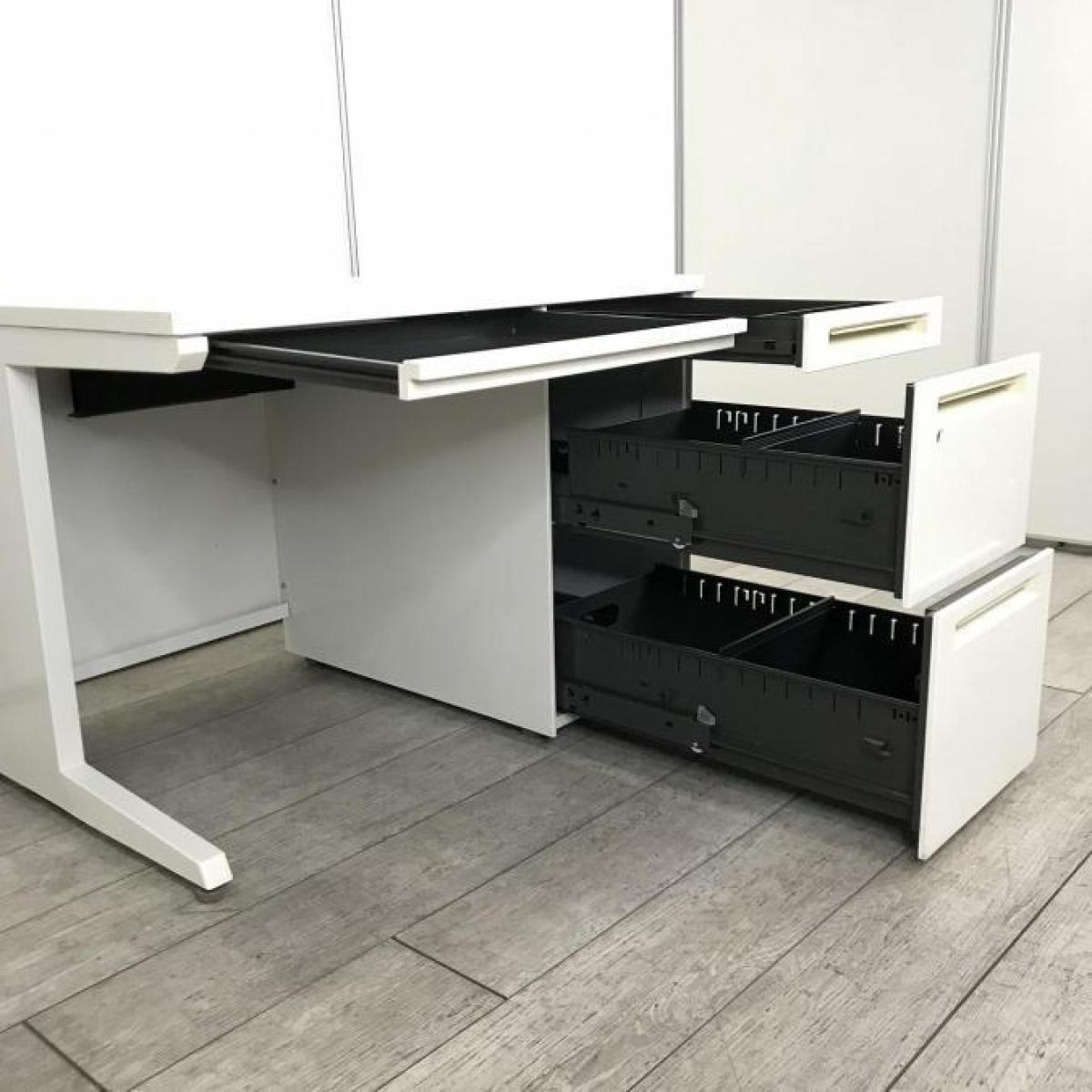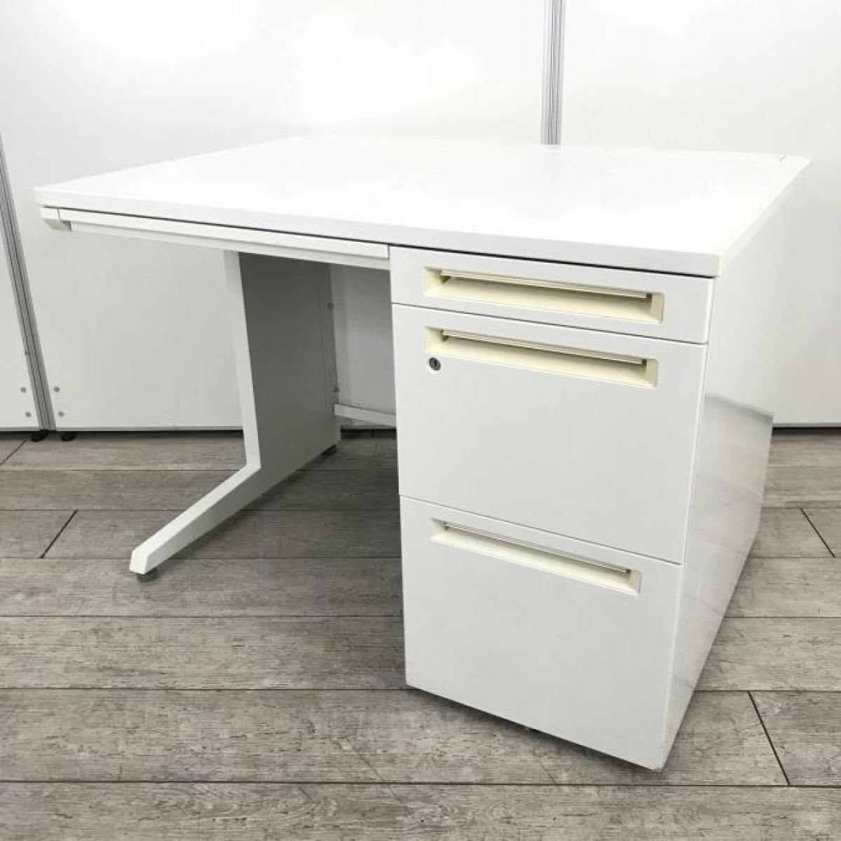 【T11】【商品入替のため、残り6台限り】オカムラ製 アドバンシシリーズ ホワイトカラー 4段収納で整理も完璧! コンパクトで清潔感のあるオフィス W1000片袖机!!
