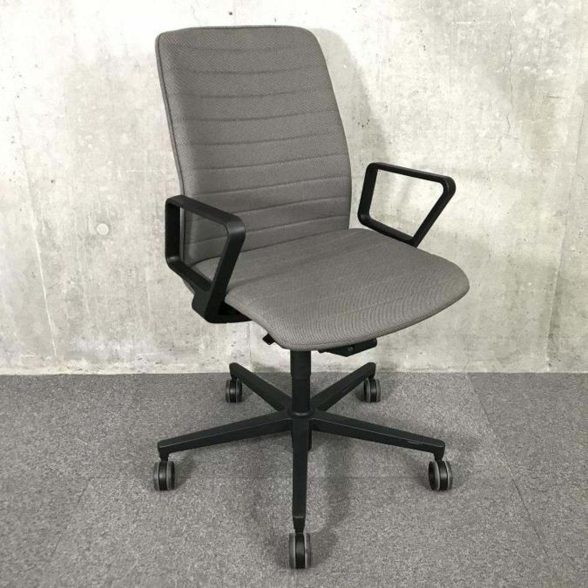 【気品ある空間に調和するタスクチェア!オフィス空間を華やかに!】■コクヨ (KOKUYO) ファブレ(FABRE) 肘付きハイバック ■サークル肘 張地:ストライプタイプ ■グレー- 茨城南店
