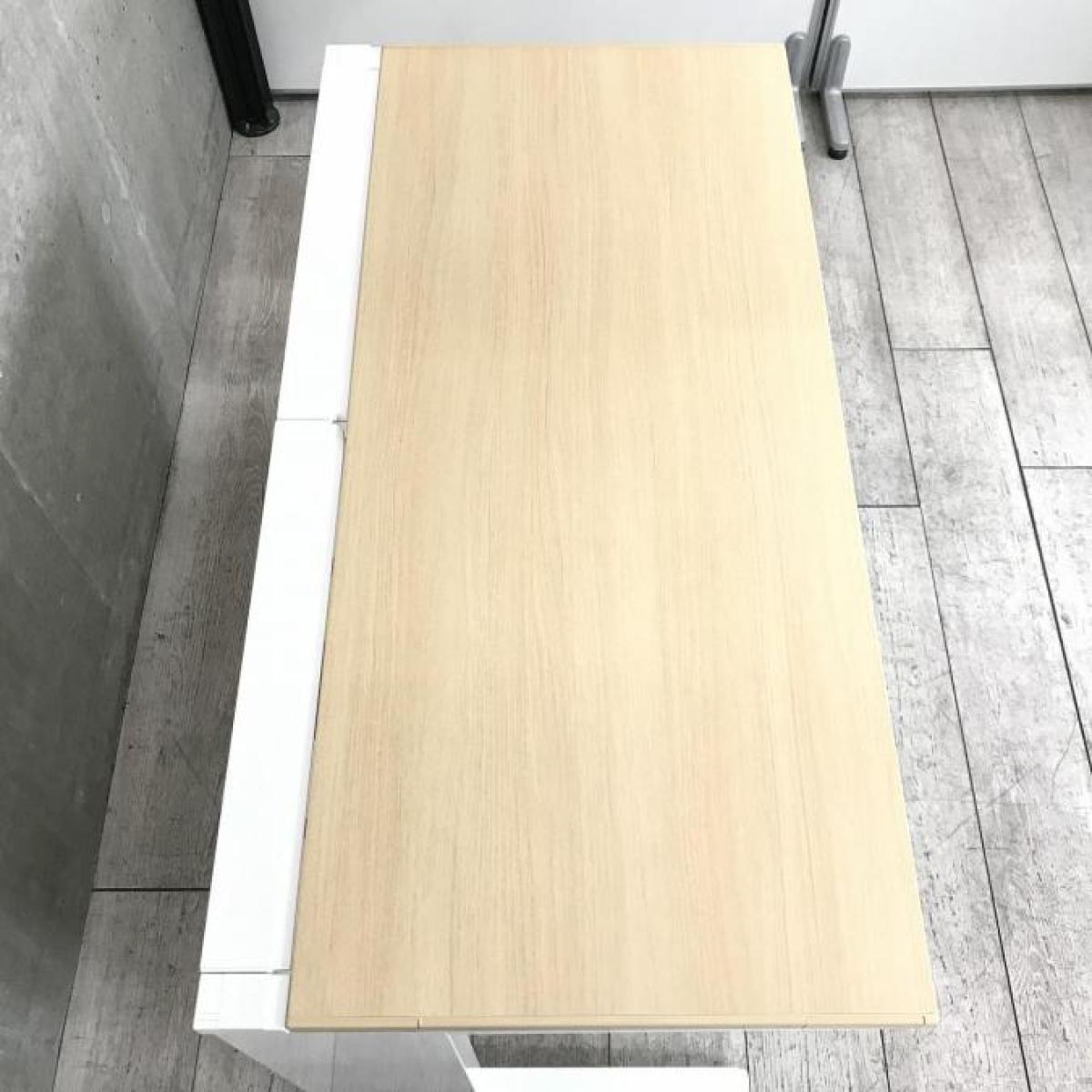 【定価約9万円】【ワイヤリング機能が充実!清潔感のあるホワイトカラーにおしゃれなナチュラル天板の平机!】■オカムラ(okamura)製 アドバンスシリーズ(ADVANCE) 平机 引き出し付き 幅1200㎜ ■天板:ナチュラル / 本体:ホワイト
