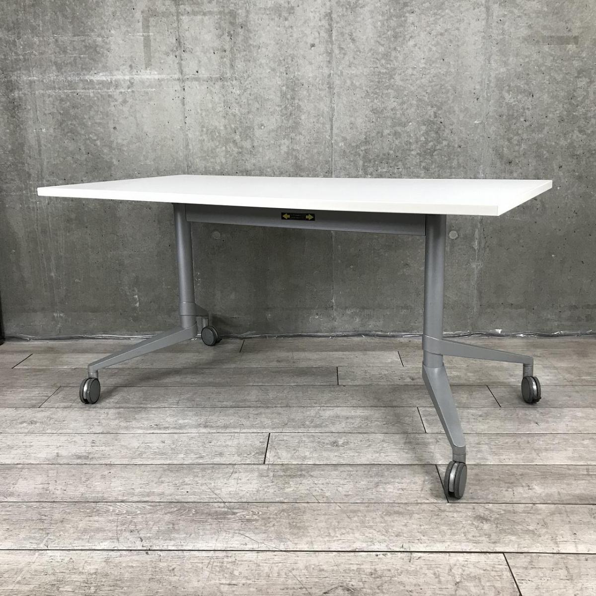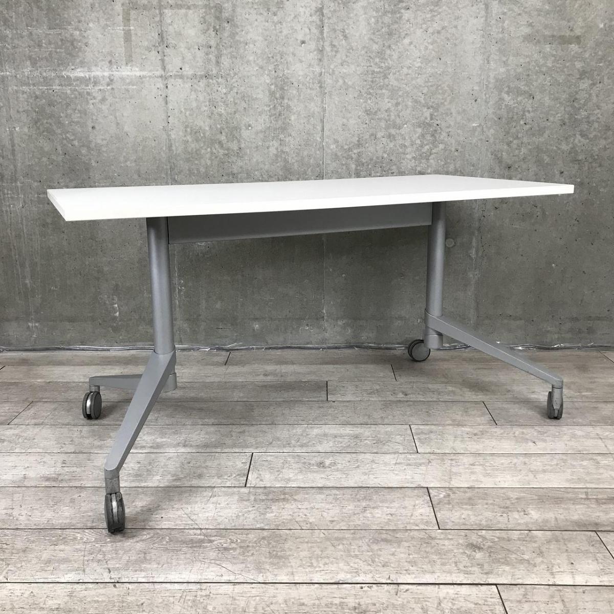 【天板広めで使い勝手が良い人気フラップテーブル!定番のホワイトカラーです!】■オカムラ(okamura) フレミックス(Flemix) 横幅1400㎜奥行700㎜ フォールディングテーブル ■ホワイト【A01008495】【IB】@ka- 茨城南店