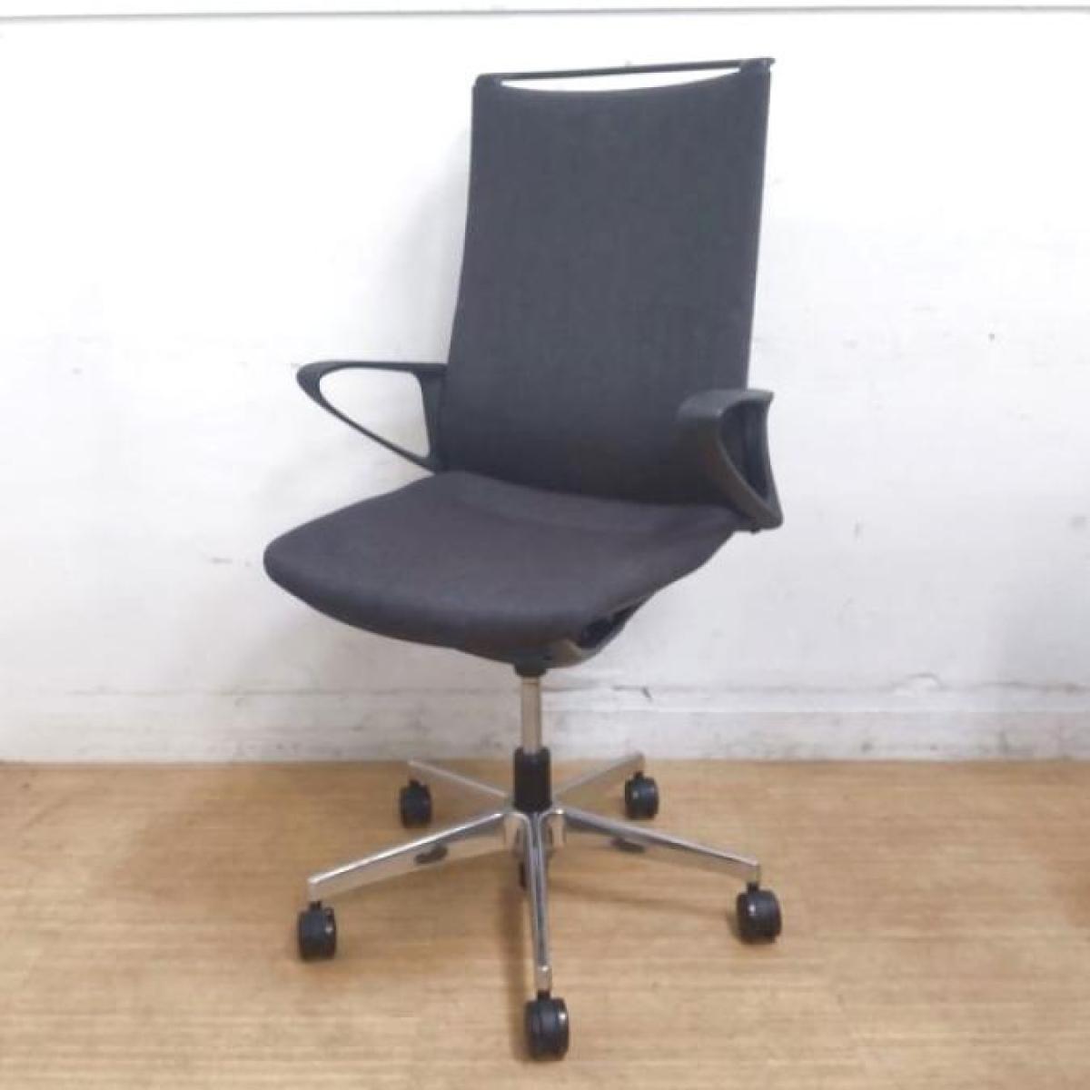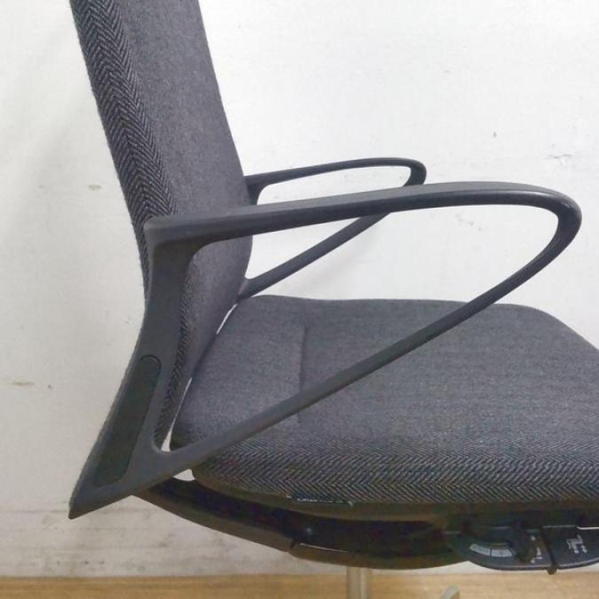 【在庫入替セール品!】スタイリッシュなデザインと確かな座り心地!会議室やモダンなオフィスの執務用としてもおすすめ! インテリア性の高い人気チェア! オカムラ/モード(mode)/ダークグレー デザインアーム フレーム(樹脂) ボディカラー(ブラック) クロス(ヘリンボーン)- 立川・八王子店
