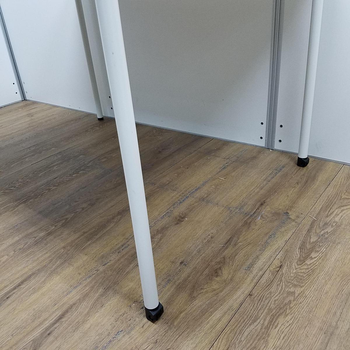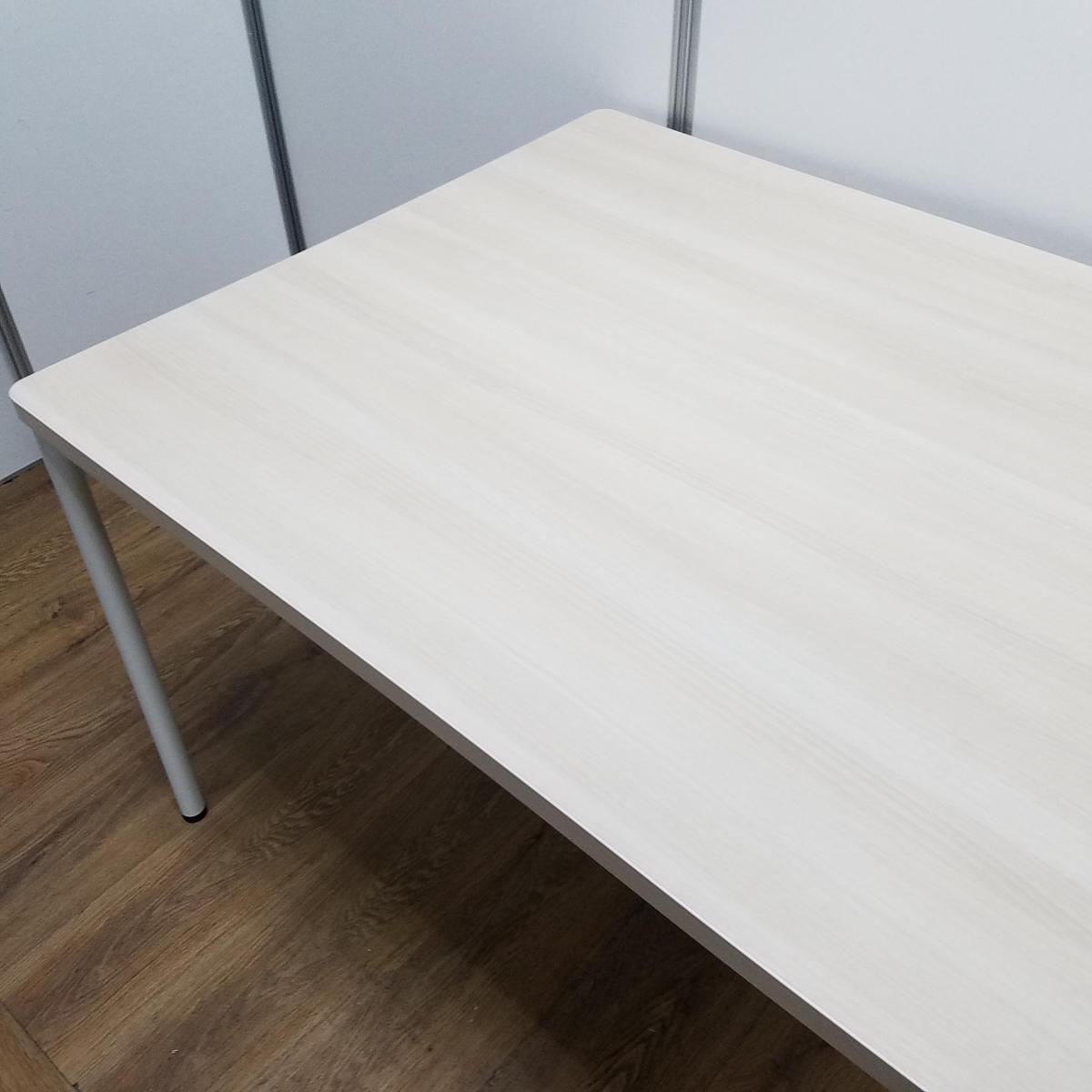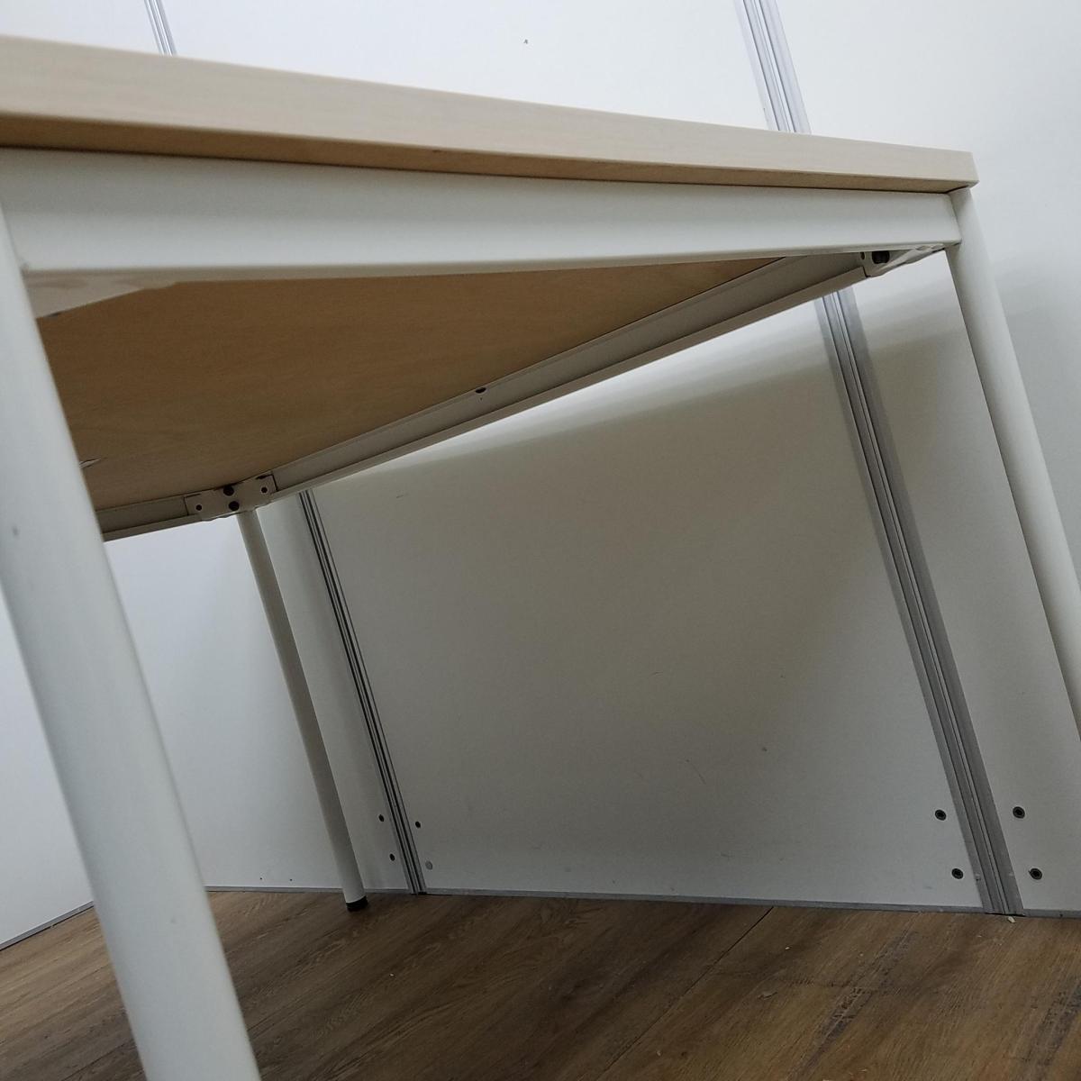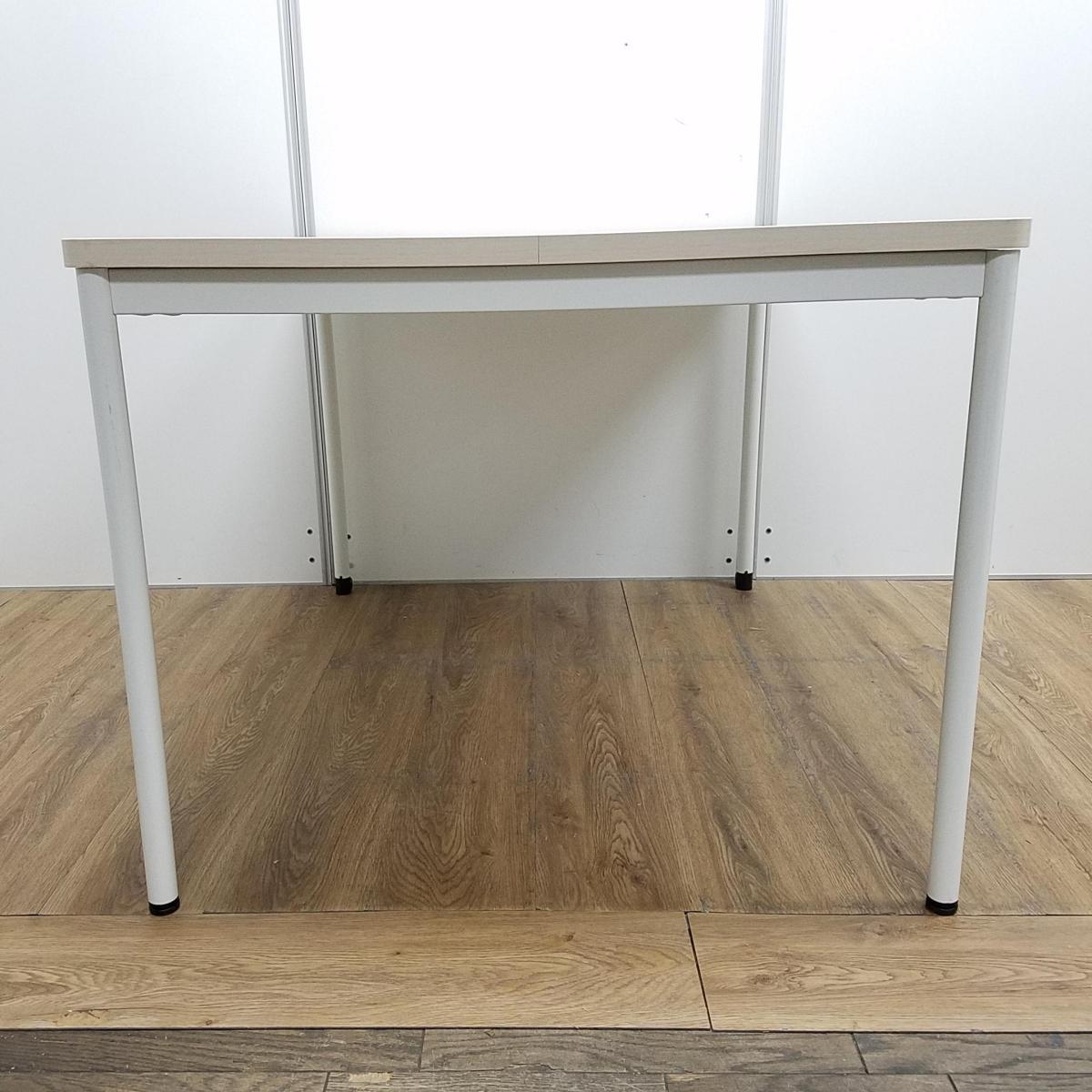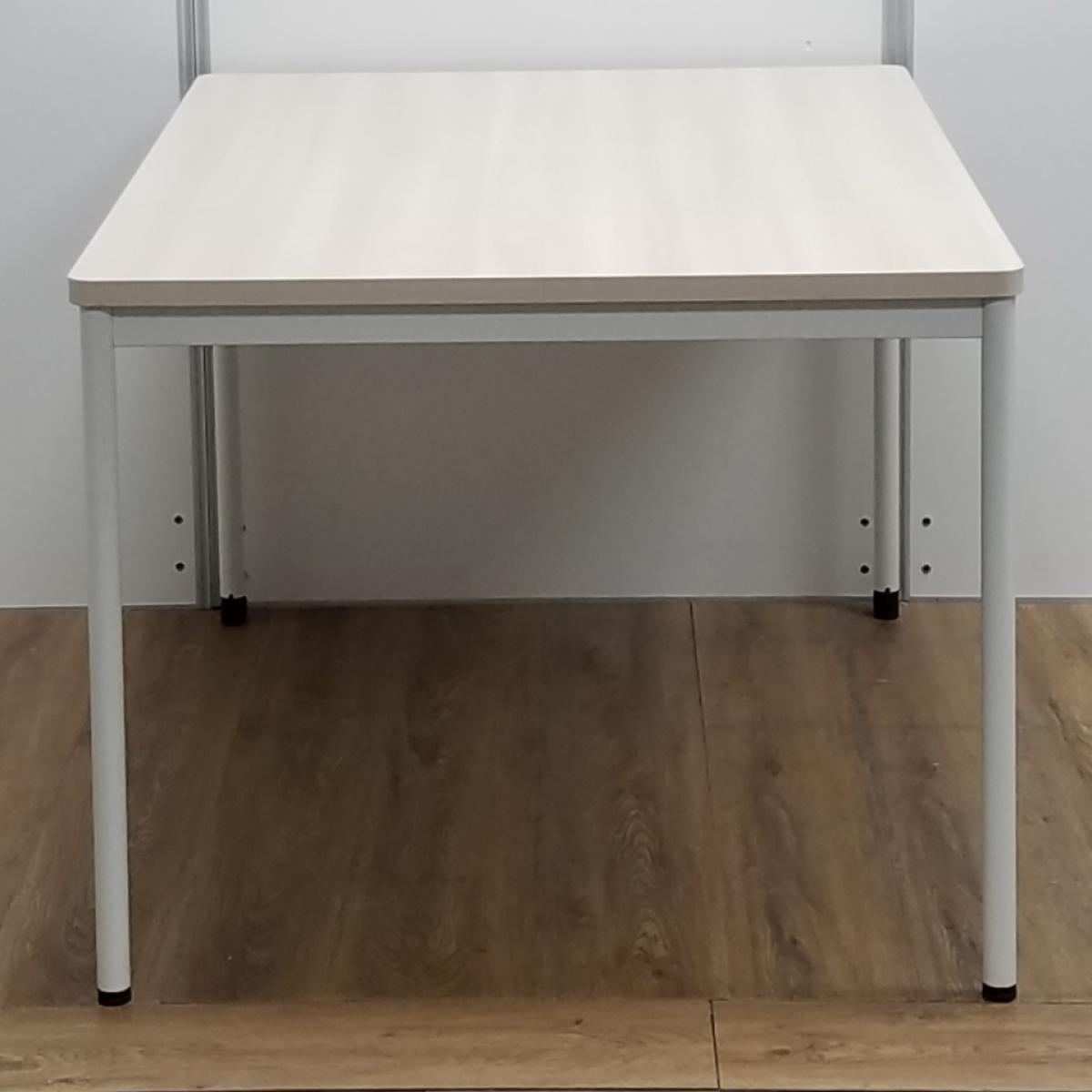 【商品入替のため、残り1台限り】オカムラ製 ライブスシリーズ 木目ナチュラル天板 4本ホワイト脚 W1200/D900サイズ 片側キャスター ナチュラル天板のワークテーブル! オシャレなカフェ風テーブルにも! W1200ミーティングテーブル!!- 京都東寺店